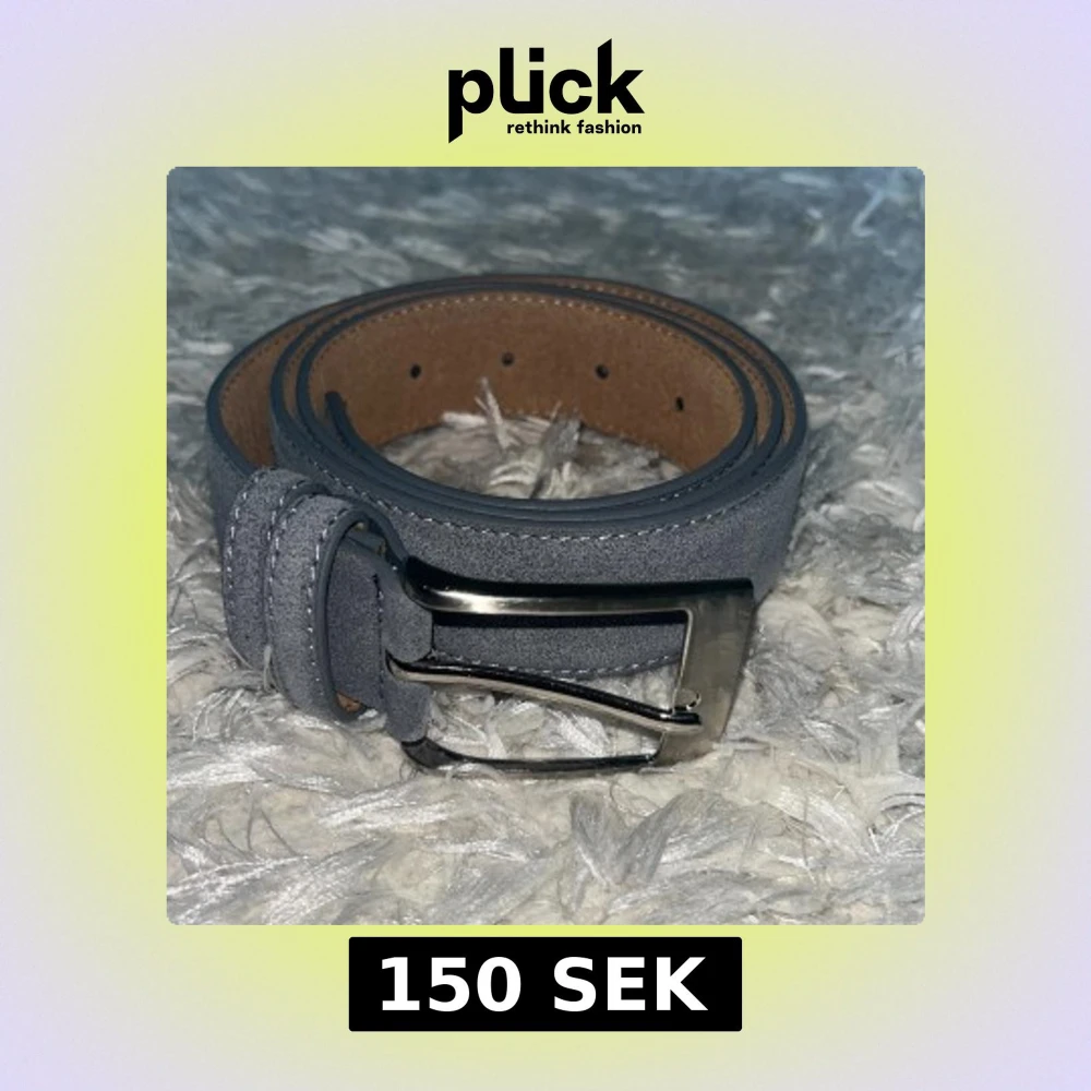 Snyggt blå bälte i mocka med klassiskt silverfärgat metallspänne. Bältet har stilrena sömmar längs kanterna och insidan är brun. Perfekt accessoar för att lyfta din outfit.