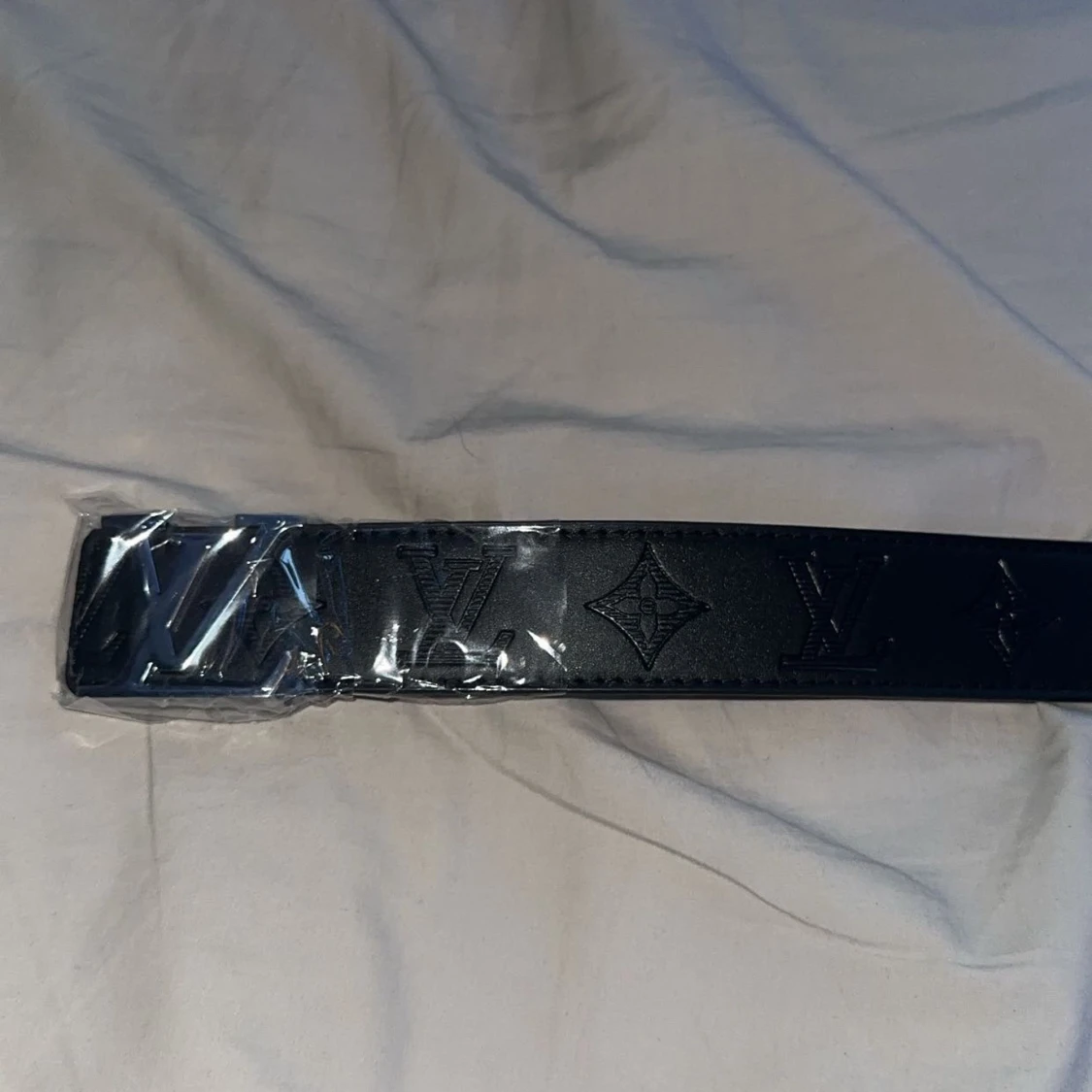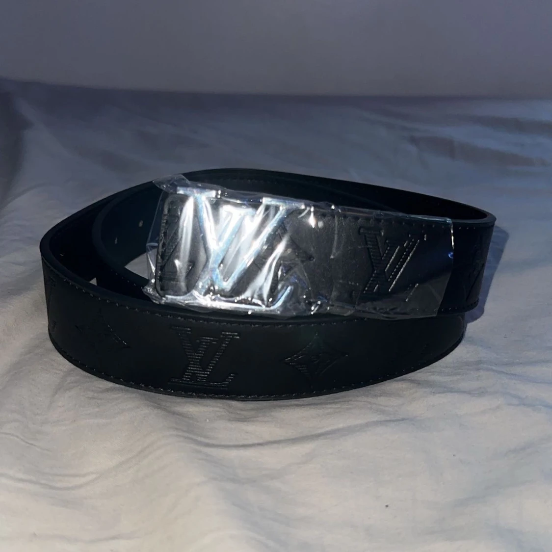 Säljer ett svart bälte i skinn med klassiska loggor och monogram präglade längs hela bältet. Bältet har en silverfärgad -spänne. Perfekt accessoar för att lyfta din outfit.