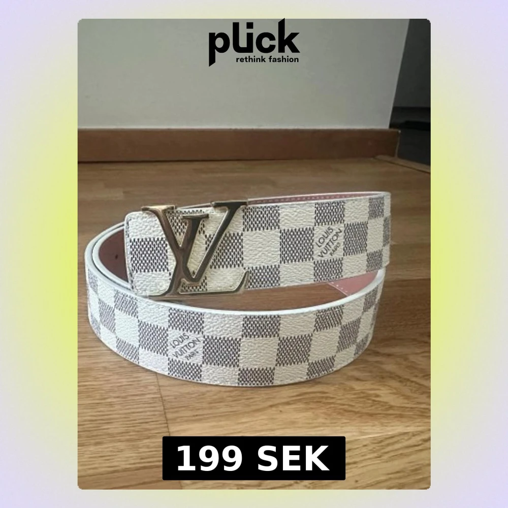 Säljer ett snyggt bälte med klassiskt rutigt mönster i vitt och grått. Bältet har en stor logga i metall som spänne och är tillverkat i skinn med präglad textur. Perfekt för att lyfta din outfit med en lyxig touch. Priser kan diskuteras i DM. Köp nu innan det tar slut!