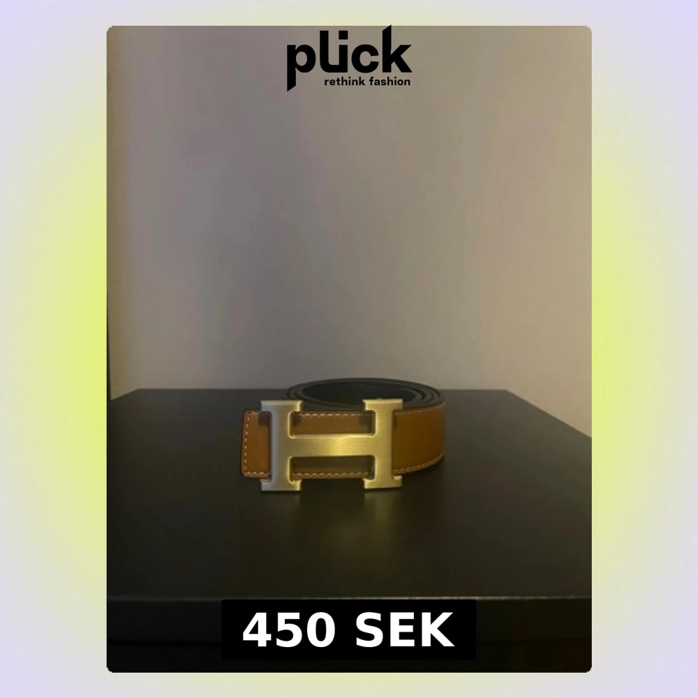 Snyggt brunt skärp med ikoniskt H-format spänne i guld. Bältet är gjort i skinn och har kontrastsömmar längs kanterna. Perfekt accessoar för att lyfta vilken outfit som helst.