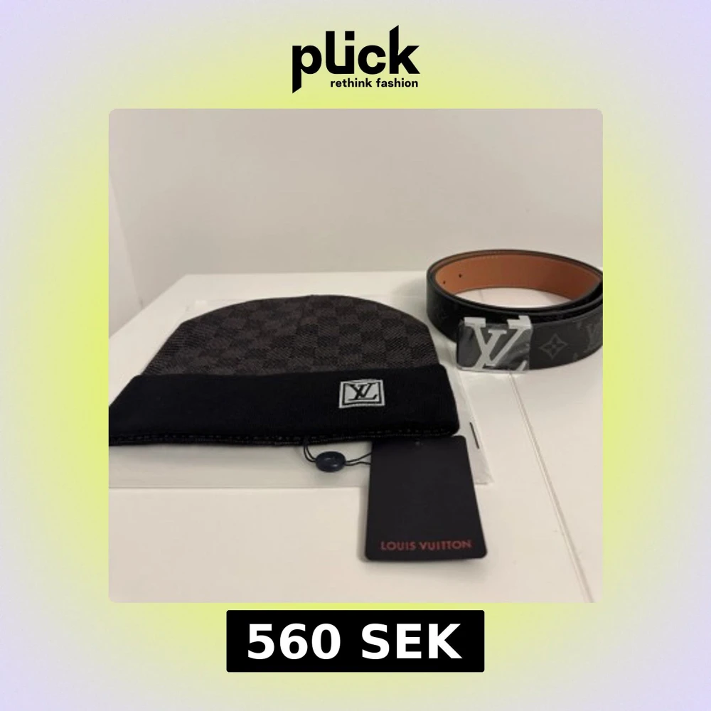 Snygg svart mössa L.V med klassiskt rutigt mönster och uppvikt kant. Mössan har en stilren L.V-logga framtill och är tillverkad i mjukt material som känns lyxigt. Perfekt för dig som vill ha en exklusiv accessoar med street vibe.