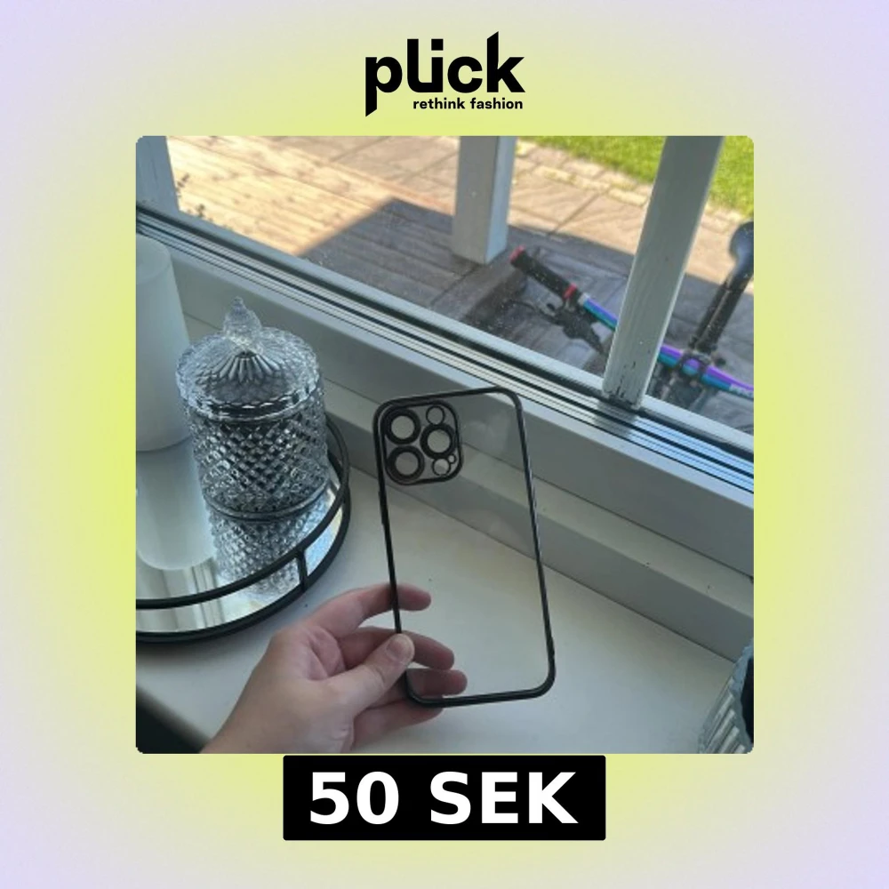 Säljer nu ett transparent mobilskal med svarta kanter till 14 PRO Max. Skalet är använd ett fåtalet gånger och har få tecken på användning.