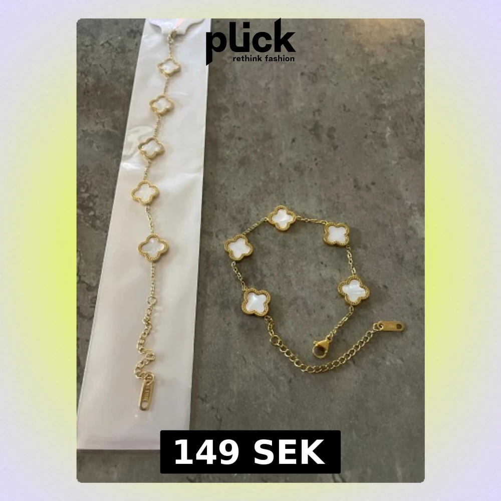 Populära fyrklöver armband i 316 rostfritt stål med 18k guldplätering för lång livslängd. Perfekt accessoar för att lyfta din outfit med en touch av lyx. 17cm sen kan man förlänga den upp till 5cm.