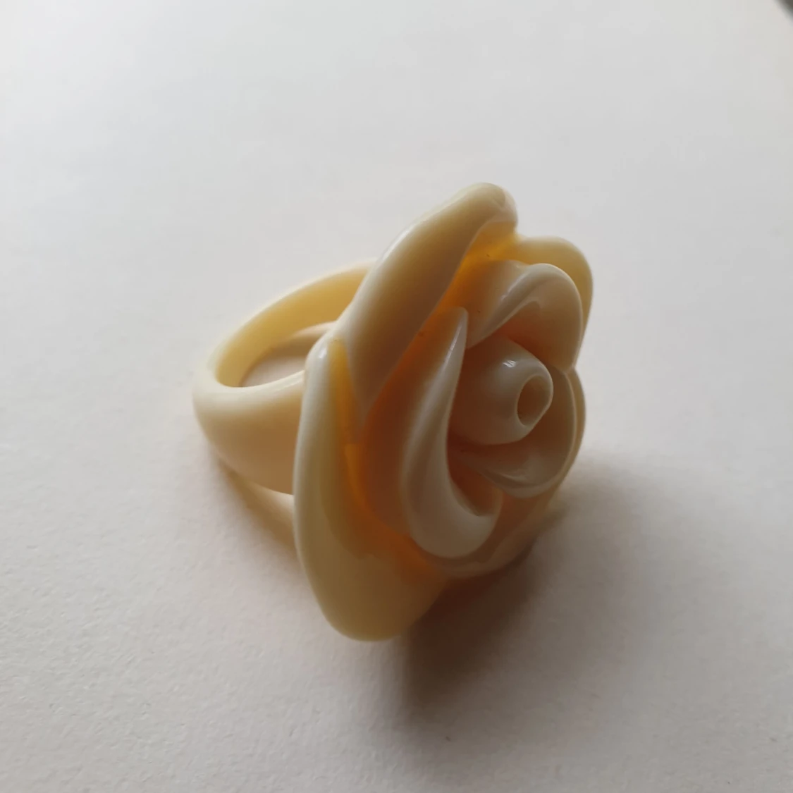 Vacker stor ring I hårdplast av en ros diameter 3 cm,stl 17