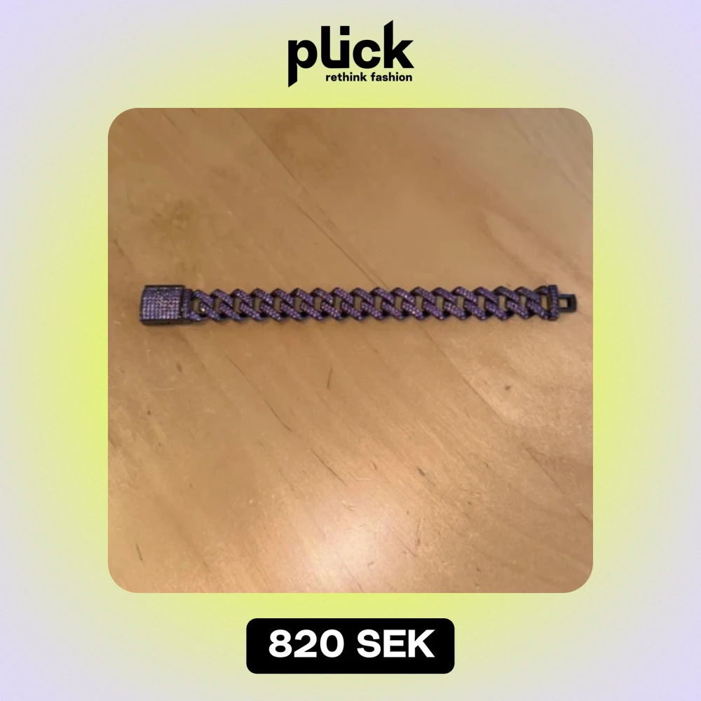 Material: Black Gold Plated (pläterad) Stone: Type: CZ Stone (kubisk zirkonia) Width: 15mm (bredd) Bracelet Length: 17cm Product Type: BRACELET (armband) Det passar inte mitt arm så jag säljer en lila cuban länk armband som är 17cm lång.