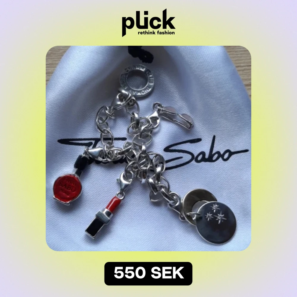 Thomas Sabo's klassiska berlockarmband ca 19 cm tot inkl lås o ring. Sitter 4 st berlocker i, även Ts, läppstift, nagellack, glasögon o sol/måne. Är i fint begagnat skick. Kolla bilder o ställ ev frågor före bud. Frakt tillkommer.