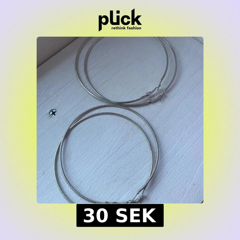 2 par silvriga örhängen, exakt likadana bara att det ena paret är en storlek mindre (se bild 2). Väldigt fina och sitter snyggt! Bara använt det ena paret några fåtal gånger så i väldigt bra skick!