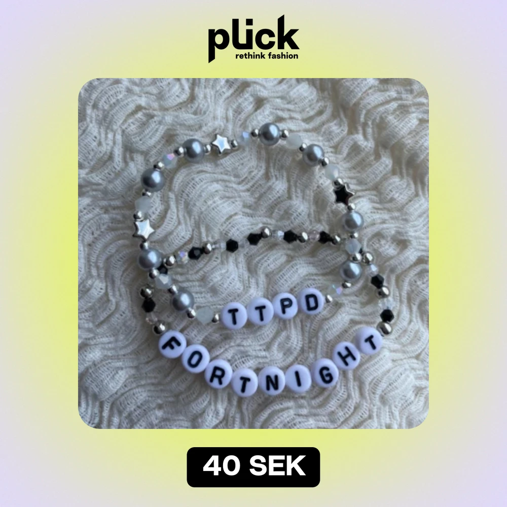 Taylor swift frienship bracelet att behålla för dig själv eller ge bort till andra swifties under the Eras tour. Dessa armband är hemgjorda, elastiska och gjorda för att passa en genomsnittlig handled. För att bevara dem, undvik kontakt med vatten.