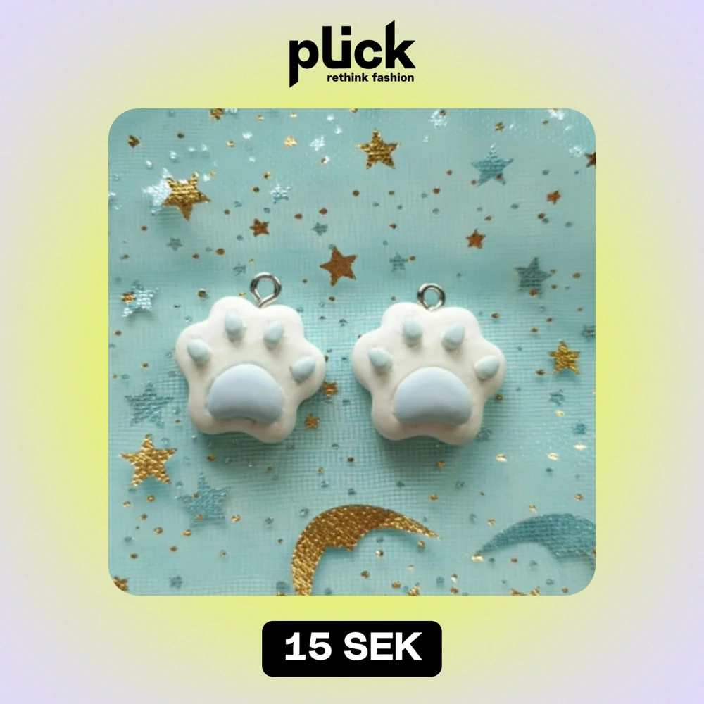 Berlocker, hängsmycke, Motiv: tassar Färg: vit med blå detalj Antal: 2st Skick: oanvända, Går att använda till smyckestillverkning, tex sätta på halsband, armband eller göra örhängen av dem.