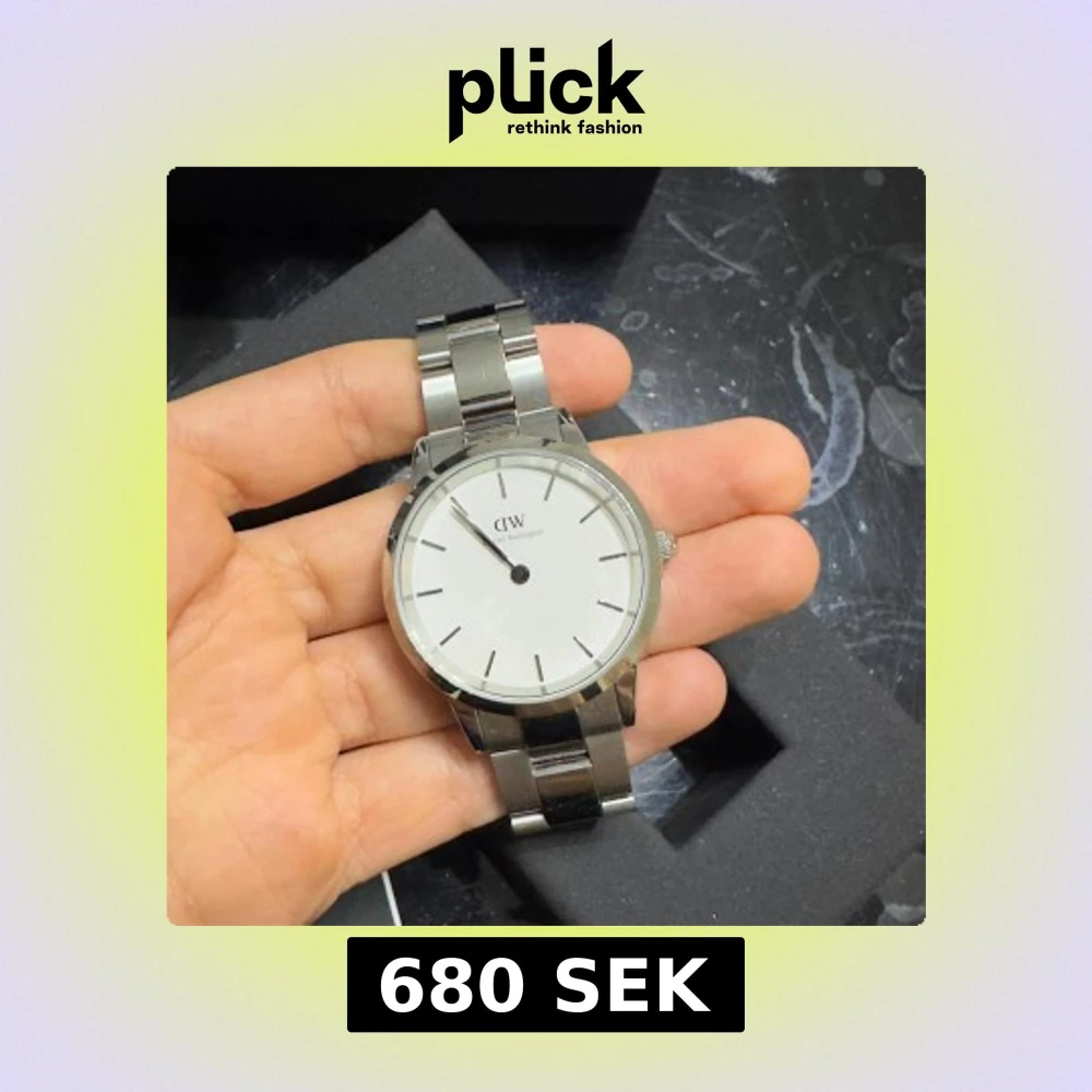 Stilren klocka från Daniel Wellington med silverfärgat armband i metall och vit urtavla. Klockan har minimalistisk design med tunna svarta index och DW-logga på urtavlan. Levereras med originalförpackning och extra länk.