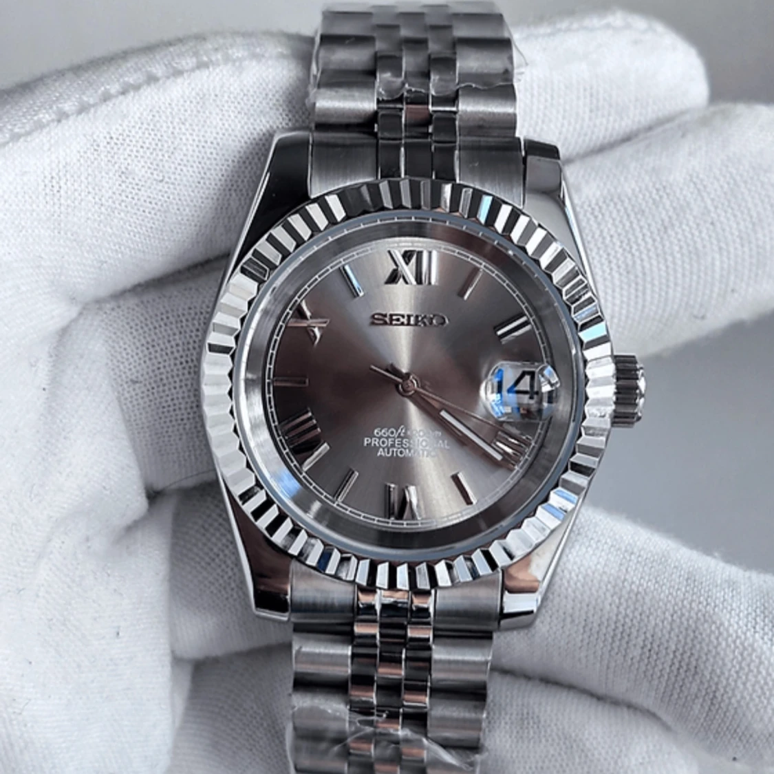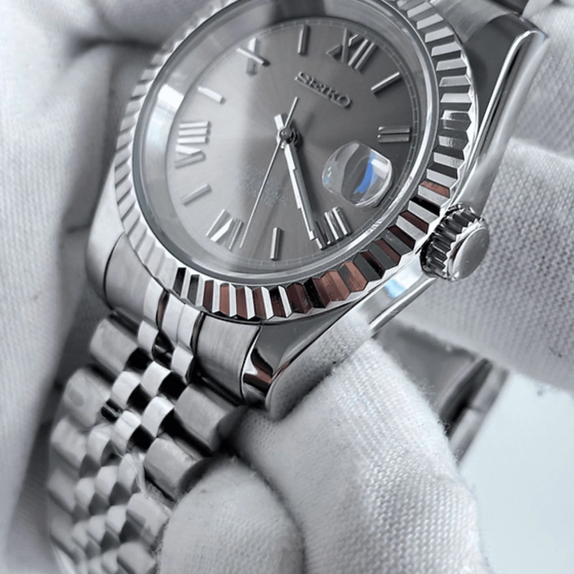 Seikmod automatisk klocka i silver romerska siffror