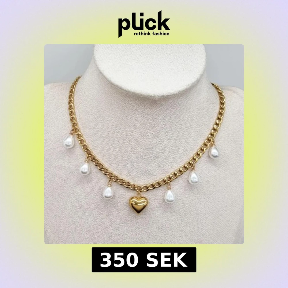 Guldhalsband med pärlor och hjärta
