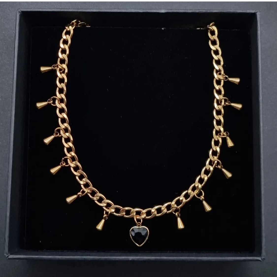 đ€Mycket vackert och stilfullt halsband med ett svart hjĂ€rta.Kedjans tjocklek -7mm. Rostfritt stĂ„l LĂ€ngd-40cm