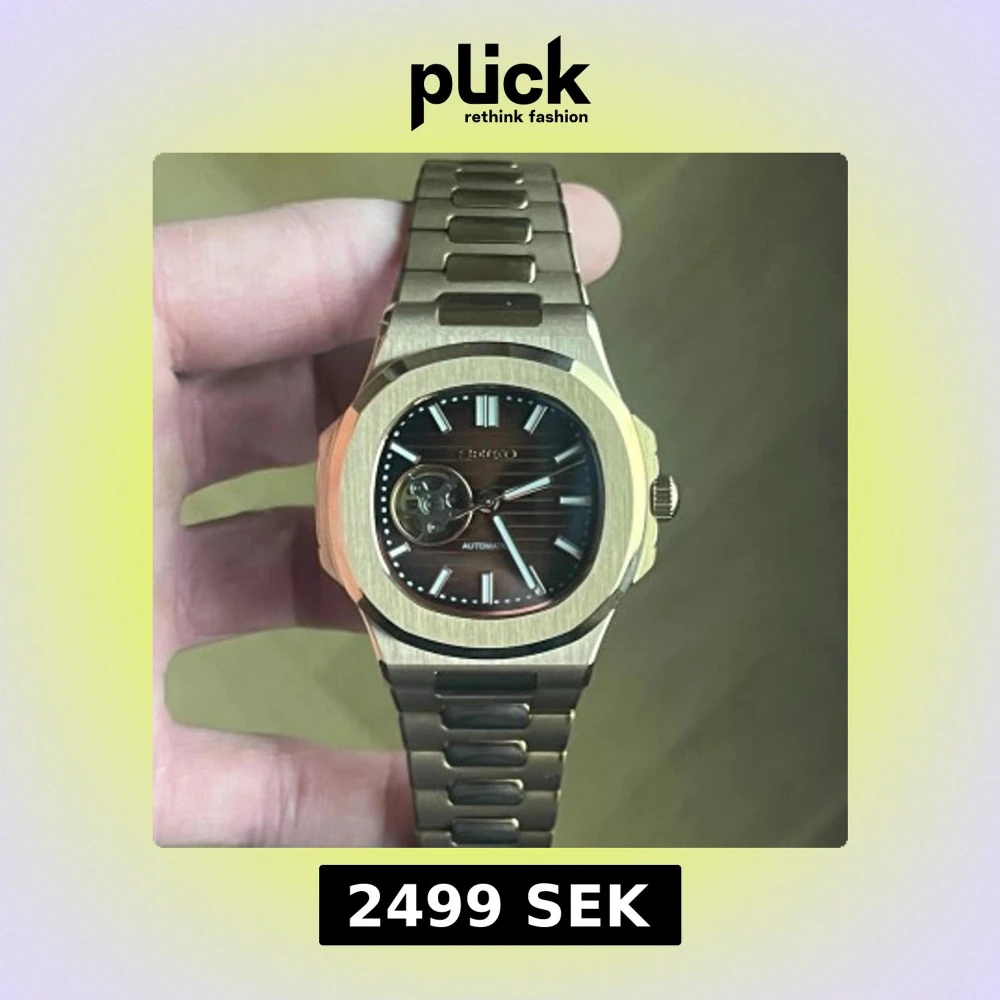 ✨ Specifikationer Modell: Seiko Mod Nautilus Open Heart ✨ Urverk: Automatiskt Seiko-urverk Gångreserv: 41 timmar ⏳ Boett: Rose gold-färgat rostfritt stål Storlek: 40 mm 📏 Glas: Reptåligt safirglas 💎 Urtavla: Brun tavla med open-heart-fönster 🫀En länk är lite böjd (se bild 3), men påverkar inte användning