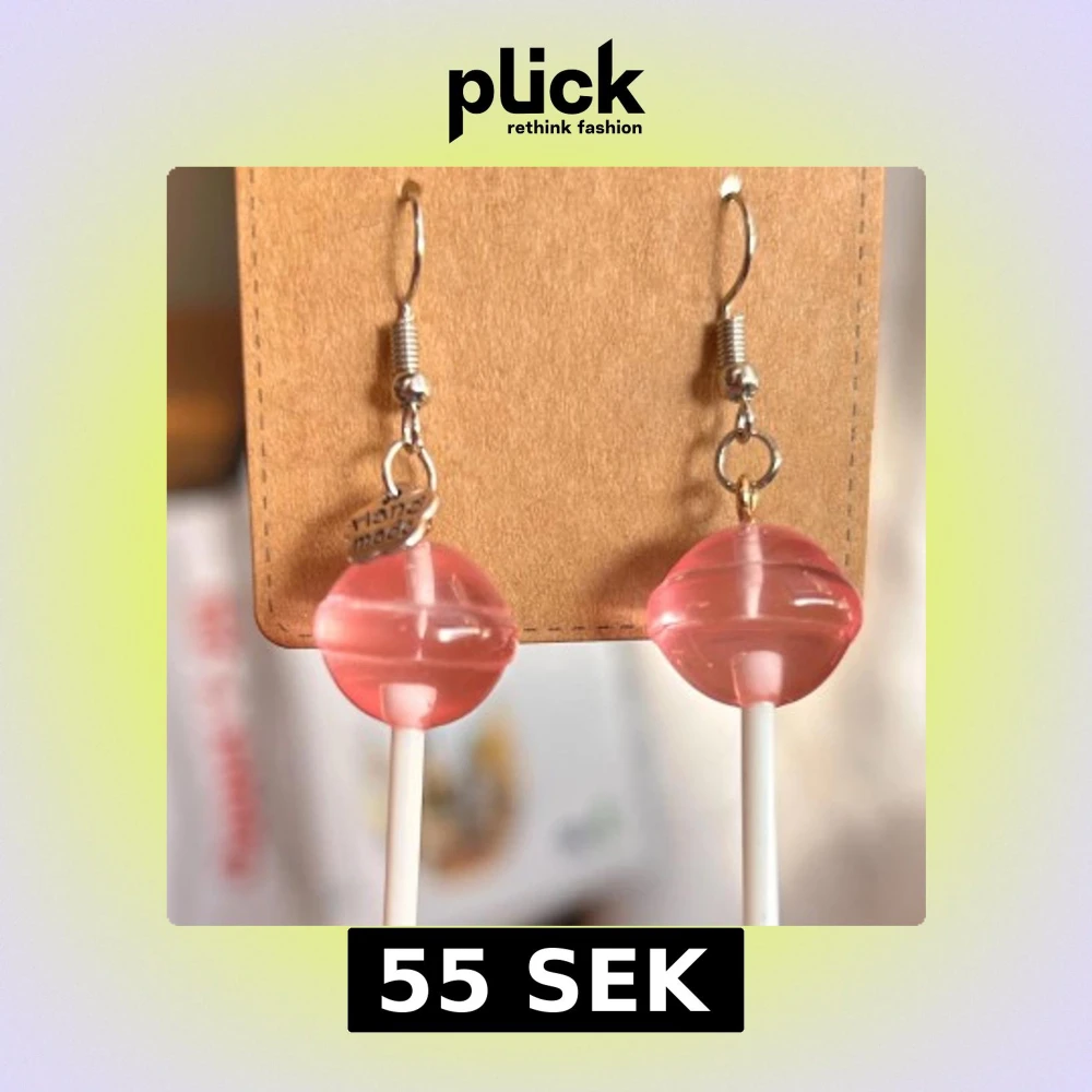 Handgjorda örhängen i form av rosa klubbor. Mått: 5 cm. Nya!