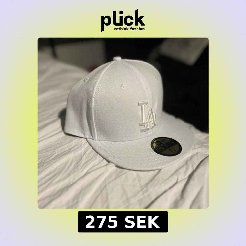 En snyggt monterad mlb keps i en helvit fĂ€rg, LAđ, storleken pĂ„ kepsen Ă€r 7 1/4, 57,7 cm, ingen förpackning ingĂ„r, kom gĂ€rna med bud eller frĂ„gor đ«Ą