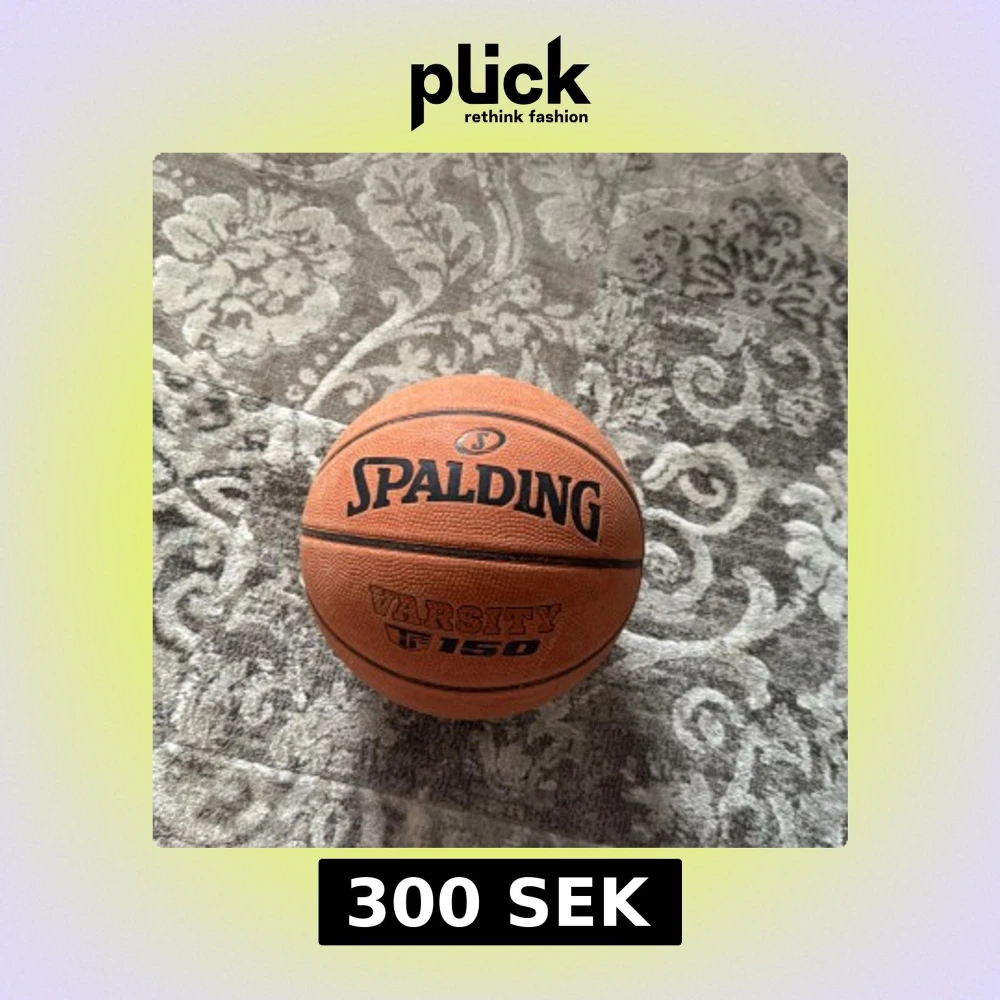 Säljer en Spalding Varsity TF-150 basketboll. Perfekt för spel utomhus eller inomhus. Den har en klassisk orange färg med svart text och är designad för att ge bra grepp och hållbarhet. Passar både nybörjare och erfarna spelare.