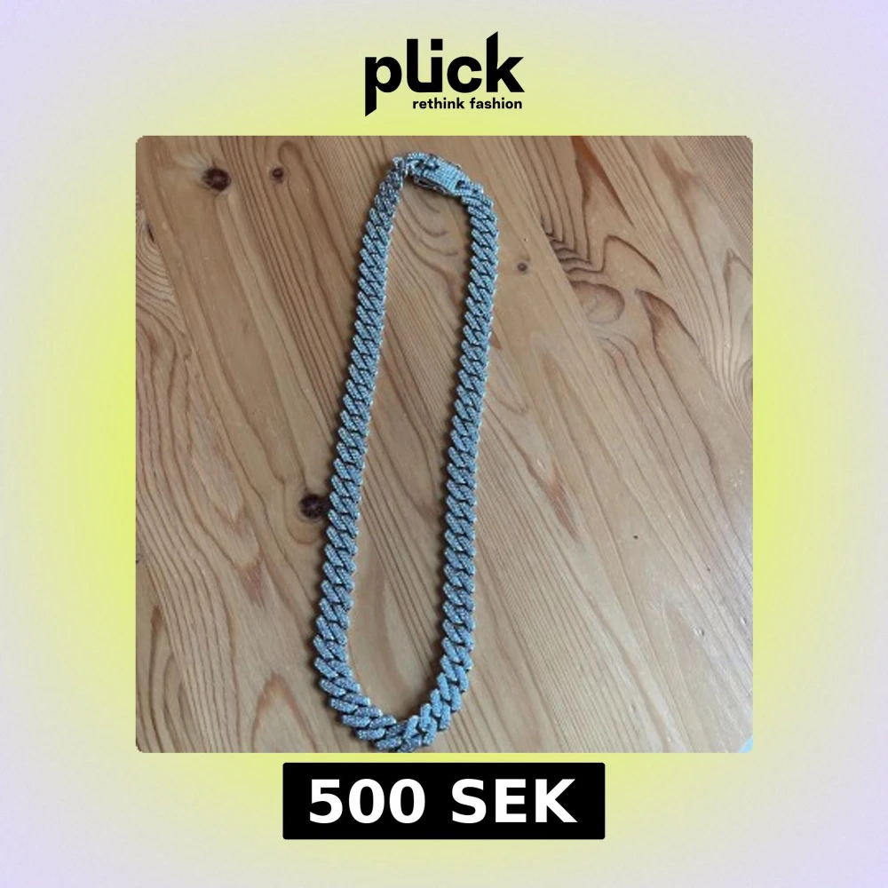 Snyggt och glittrigt halsband i silver med en robust kedjedesign. Perfekt för att ge en extra touch av glamour till din outfit. Halsbandet har en säker låsmekanism som håller det på plats.pris kan diskuteras