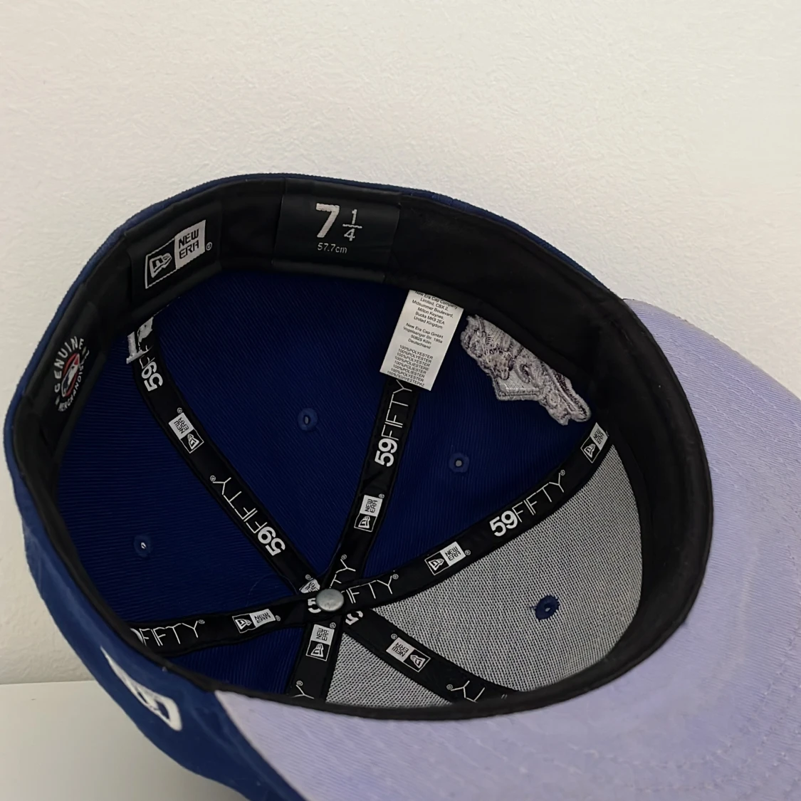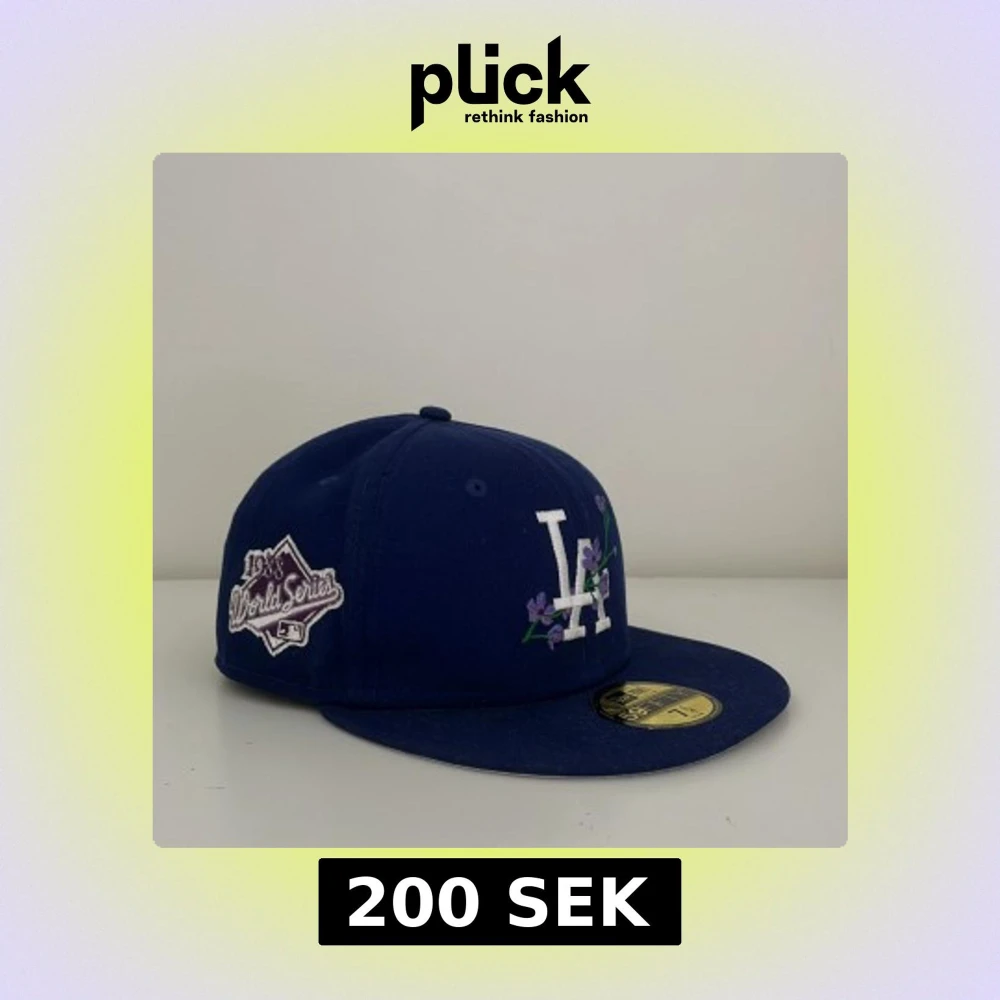 Snygg blå 59FIFTY keps från New Era med LA Dodgers logga framtill och broderade lila blommor. På sidan finns ett 1988 World Series märke i vitt och lila. Kepsen har platt skärm och klassisk passform, perfekt för dig som gillar sportig stil.