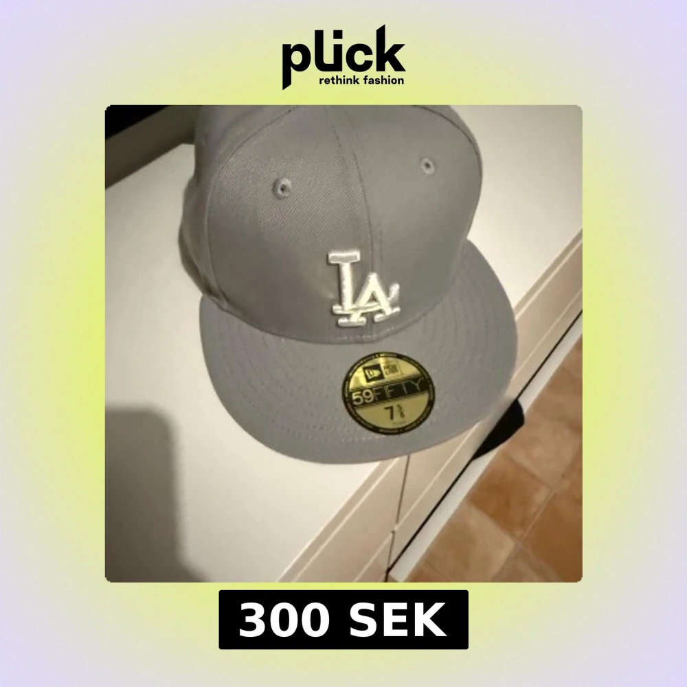 Snygg grå New Era 59FIFTY keps med LA-logga broderad framtill i vitt. Klassisk flat peak och broderade ventilationshål. Kepsen är i fast modell utan justering bak och har svart insida med märkning. Perfekt för dig som gillar streetstyle.