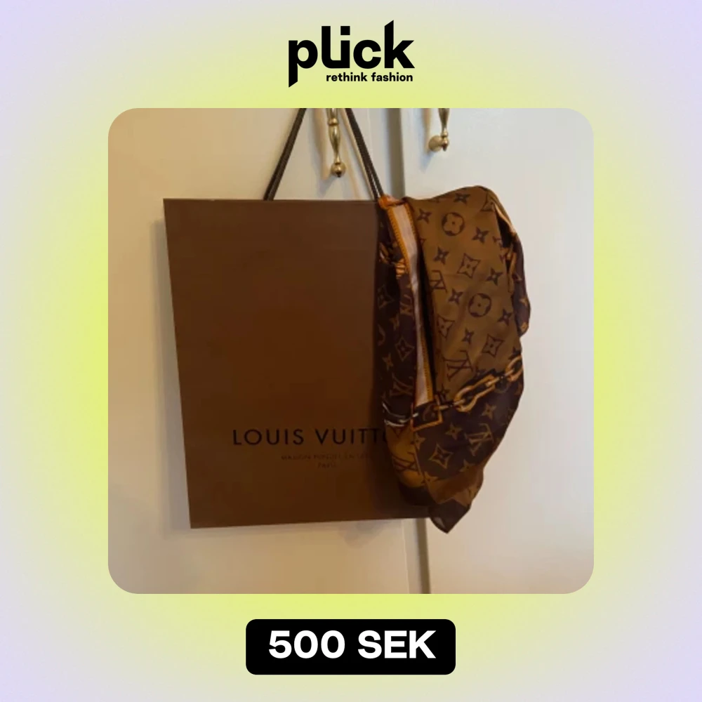 Skarf LV med äkta bärkasse papp vintage. Tyget kan man nära som sarong mm ca 70x170 cm troligen inte äkta.