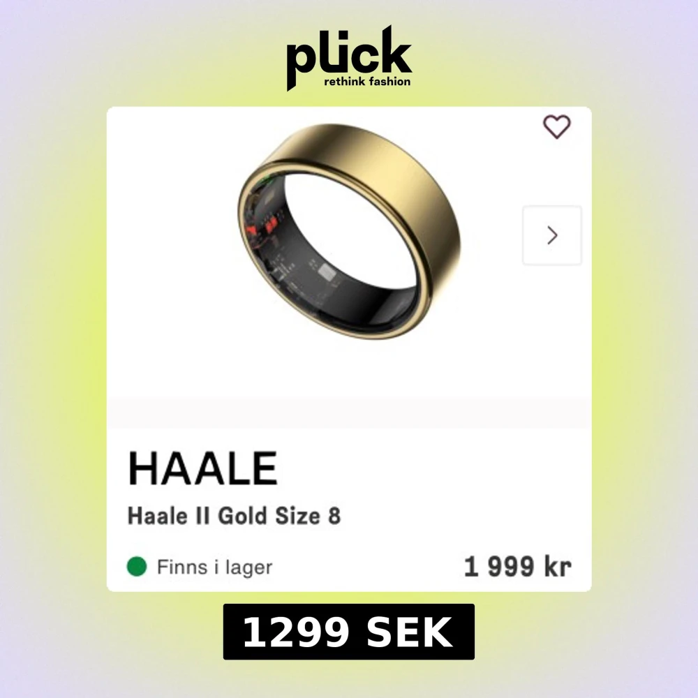 Smart ring från Haale i guld med slät, modern design, ser ut som en vanlig snygg ring men mäter bland annat, HRV, BPM, sömn, aktivitet osv. Ringen kopplas till en kostnadsfri app där du kan se hur din statistik ser ut. Helt oanvänd, då den inte är min storlek. Kommer med laddarsladd, laddfodral, ringskydd, putstrasa och själva ringen. Storlek 8.