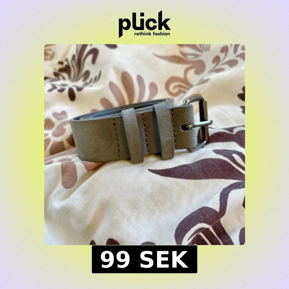 Säljer ett stilrent grått bälte med ett klassiskt silverfärgat metallspänne. Bältet har en slät yta och flera hål för justerbar passform. Perfekt accessoar för att lyfta din outfit.