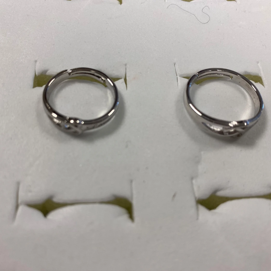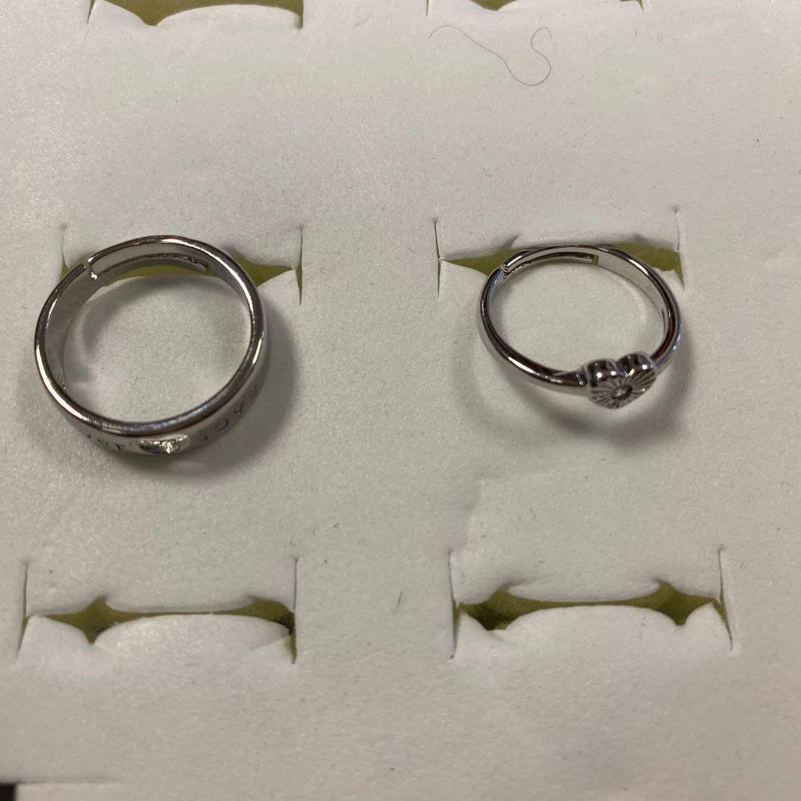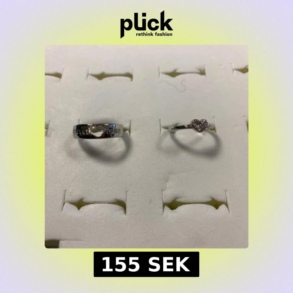 Säljer två stilrena ringar i 925 Silverpläterade Ena ringen har en söt knutdetalj framtill, medan den andra har en enkel, slät design. Perfekta att bära tillsammans eller var för sig för en clean look. Stämplat, 155kr/ par , helt ny
