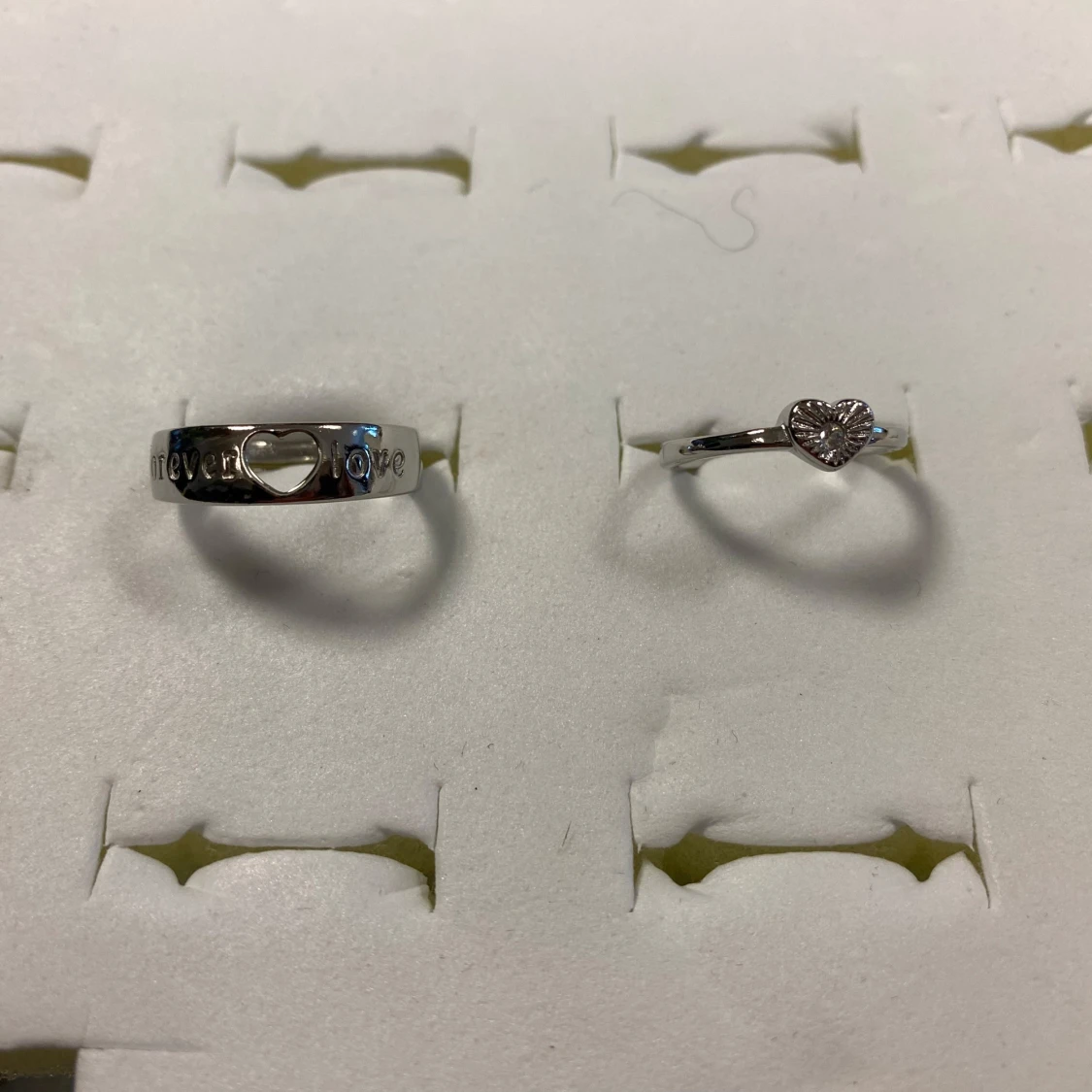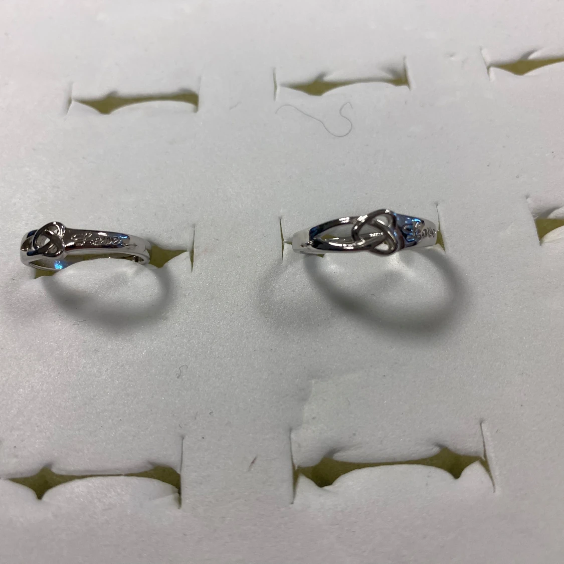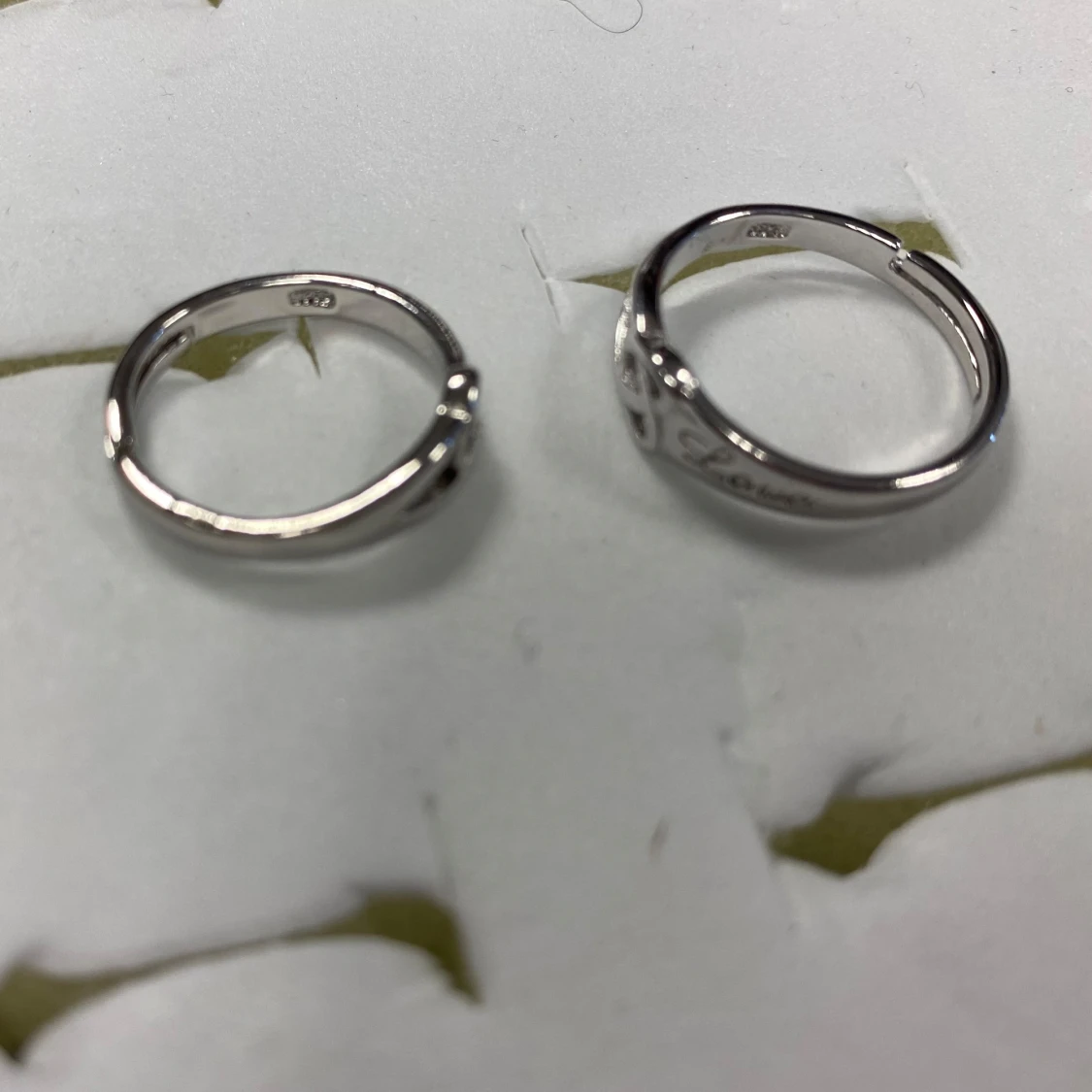 Säljer två stilrena ringar i 925 Silverpläterade Ena ringen har en söt knutdetalj framtill, medan den andra har en enkel, slät design. Perfekta att bära tillsammans eller var för sig för en clean look. Stämplat, 155kr/ par , helt ny