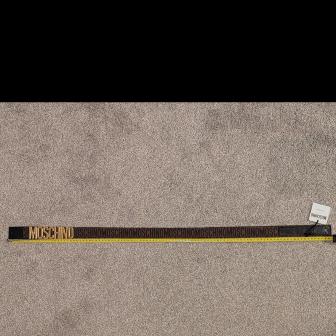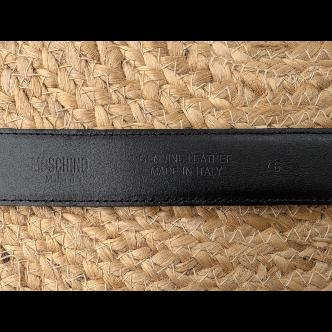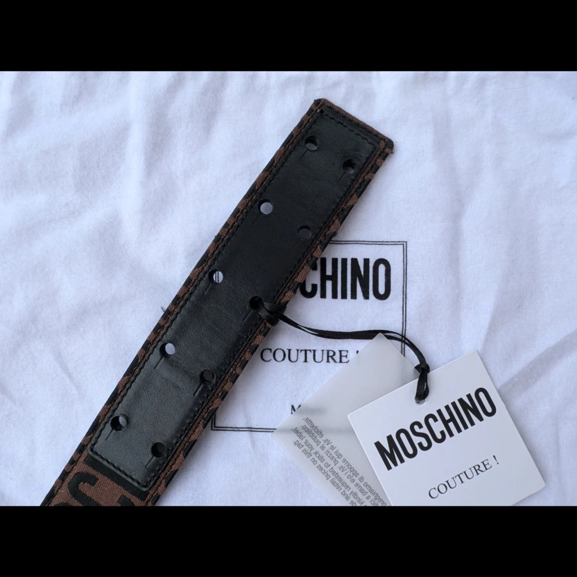 Tjena! Jag säljer nu mitt Moschino bälte i nyskick (med tags) använt 1-2 gånger. Storleken är 46 EU och passar den som har 85-95 cm i midjemått (se sista bilden för mått på bältet) Box, dustbag och allt annat på bilderna medföljer.