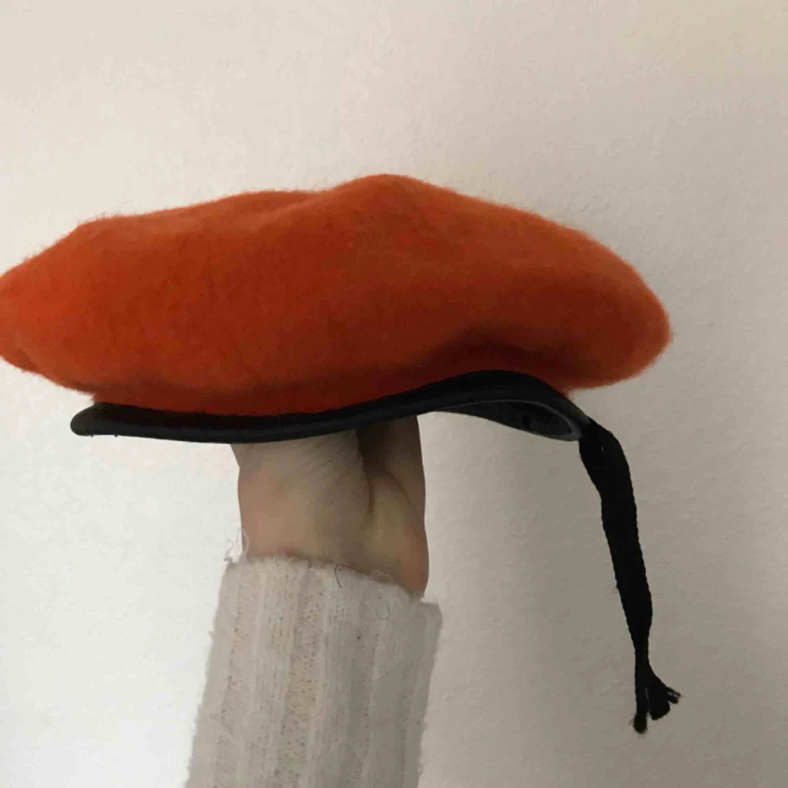 Orange ”militär-basker” med läderdetaljer. Så snygg 🌟 Storlek 55. Frakt tillkommer