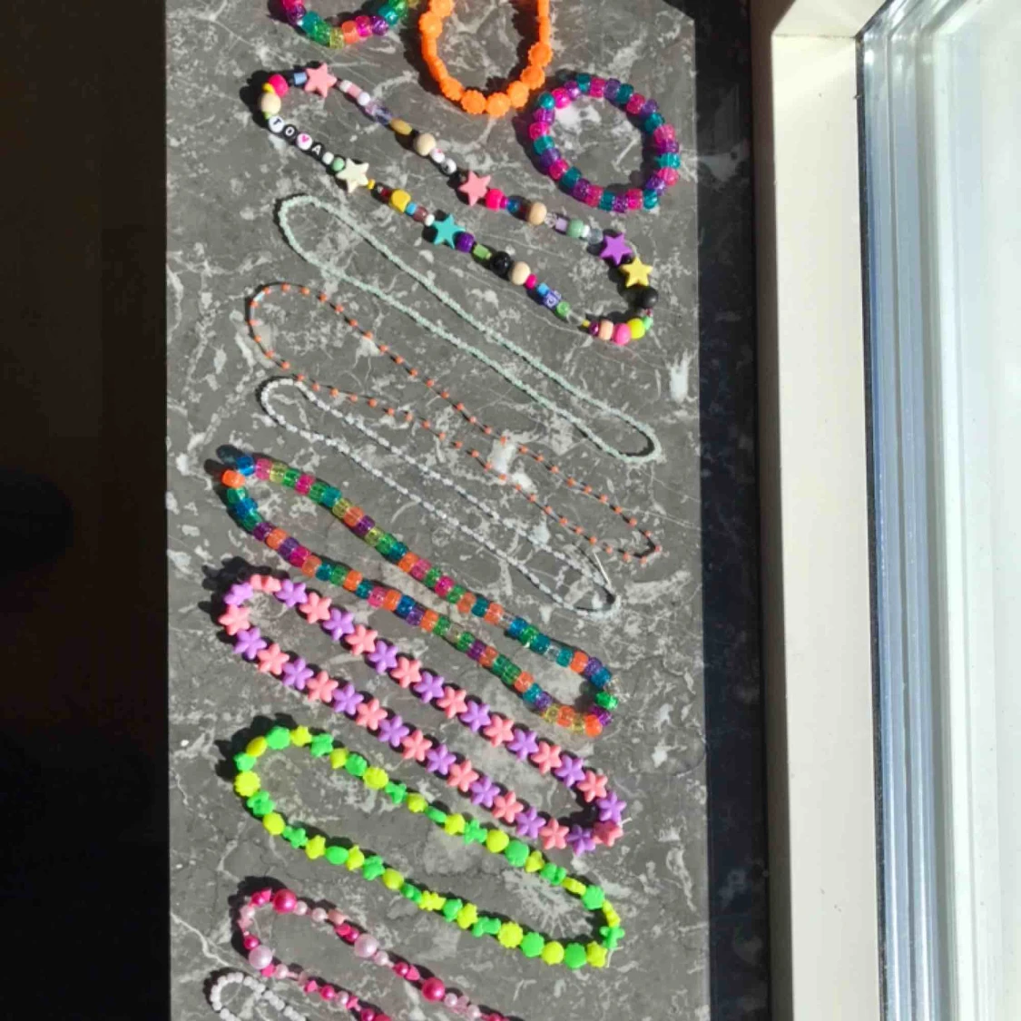 Egengjorda och köpta pärlhalsband. Ursnygga tillsammans med andra kedjor. Priset kan variera från smycke till smycke. Skriv för närmare info eller bilder! Frakt kan tillkomma.