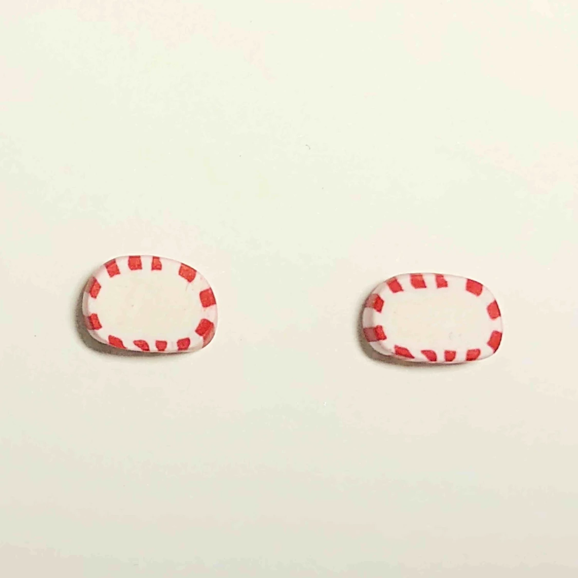 Handgjorda örhängen i form av ovala polka-godisar. De är 7mm höga och 11mm breda. Nickelfria. Går även att få som halsband, nyckelring och berlock. Jag bjuder på frakten🥰