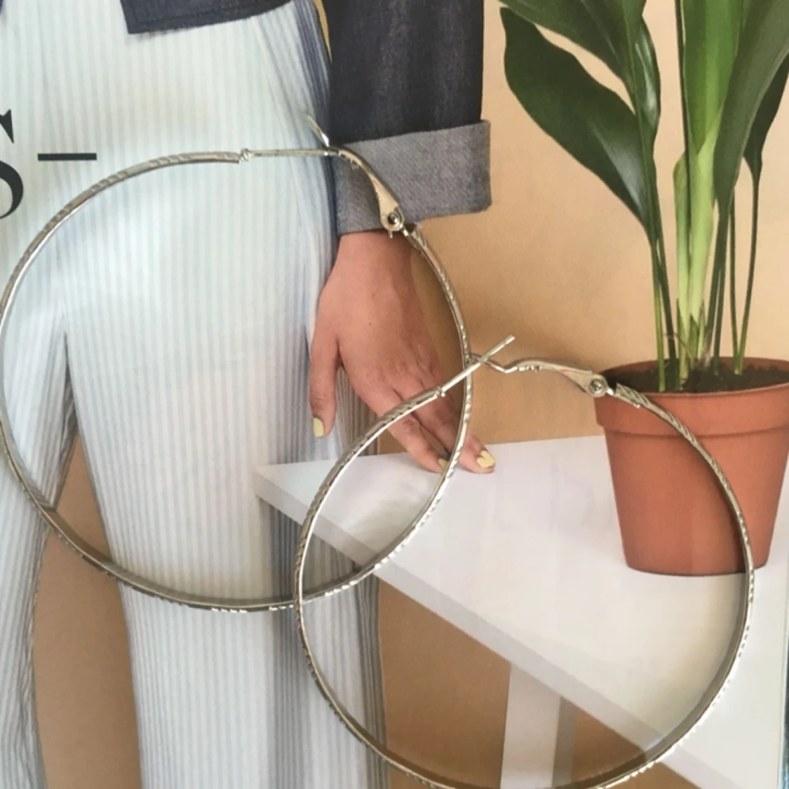 ”mönstrade” silvriga hoops! aldrig använda🌸 frakt 9kr