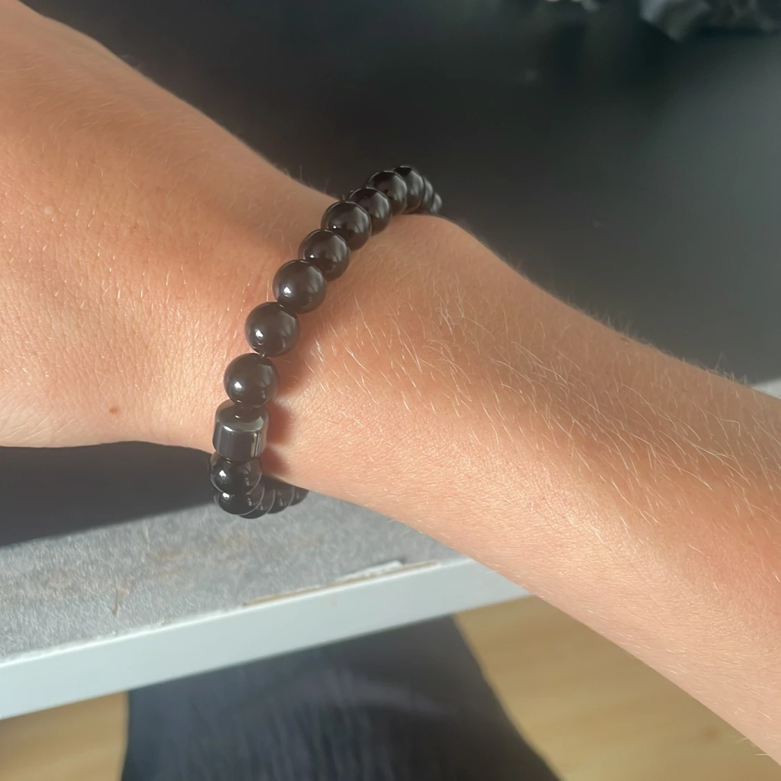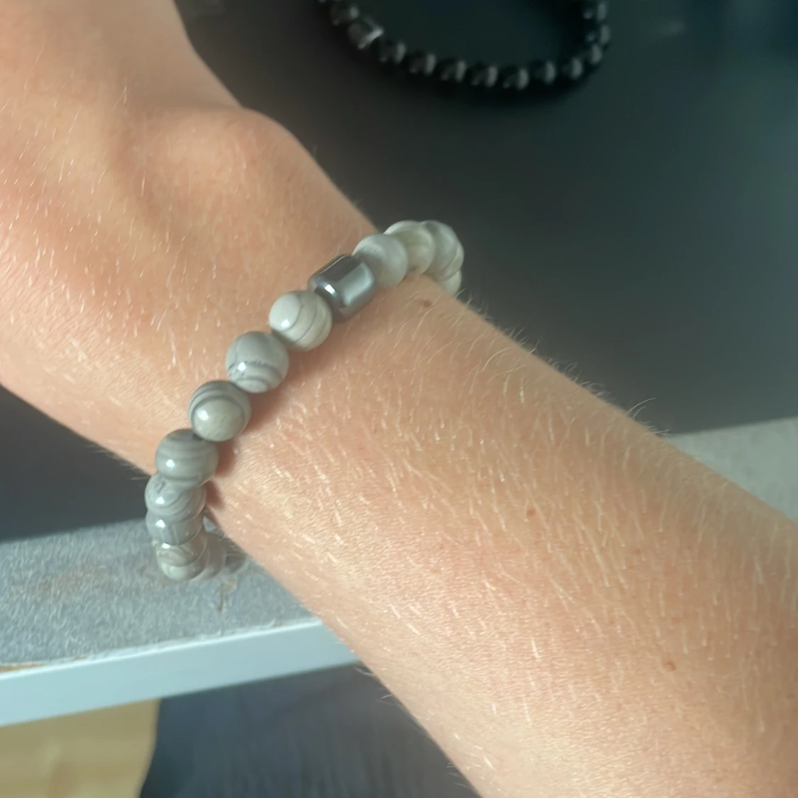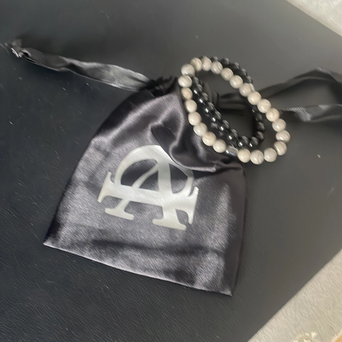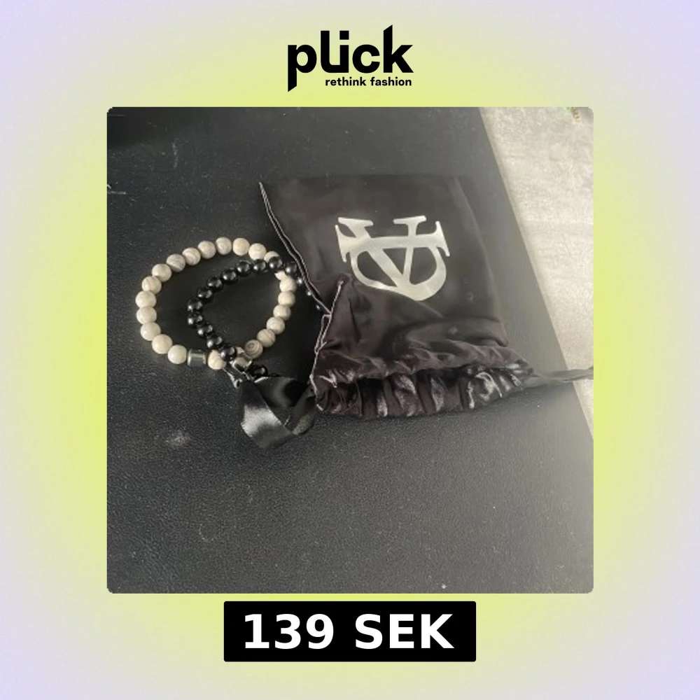 Säljer två snygga pärlarmband från Allcap one. Ett armband är helsvart med blanka pärlor, det andra är grått med marmorerade pärlor. Båda har en cool, minimalistisk vibe och levereras i en svart satinpåse med logga.