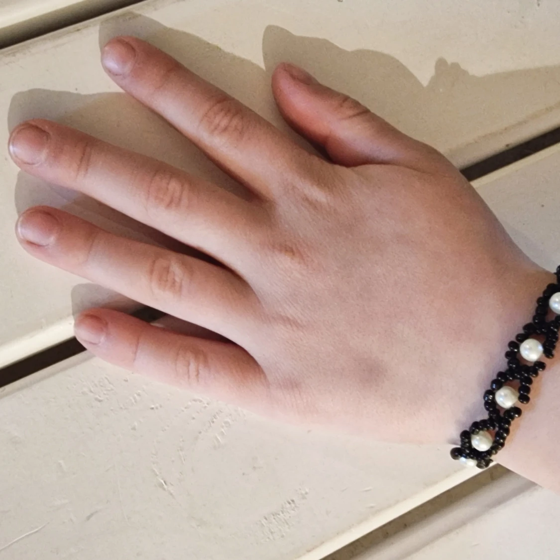 Checkmate" armband! Svart & vitt, stilrent & unikt. Handgjort med kärlek! Perfekt för 6-8 år. Anpassar storlek och färger efter dina önskemål! Samfraktar!