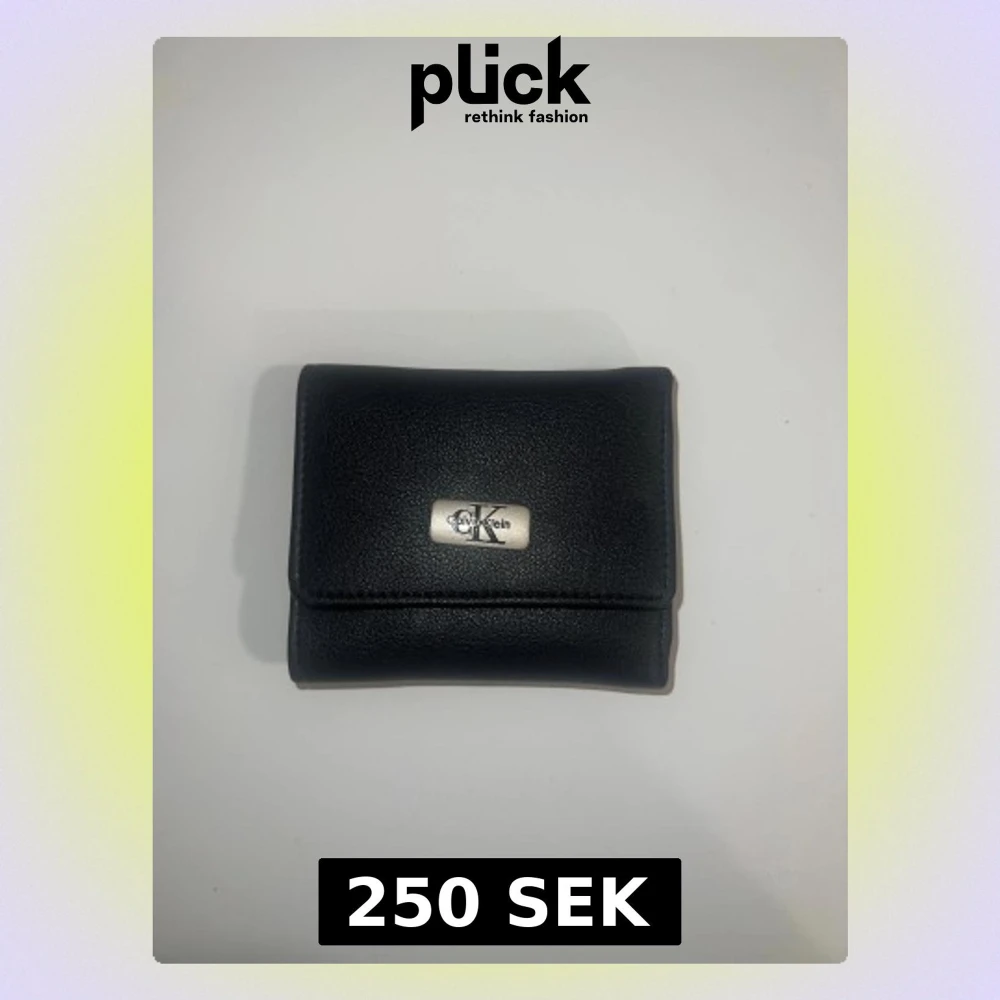Stilren svart plånbok från Calvin Klein i skinn med metall logga på framsidan. Plånboken har flera fack för kort och sedlar, samt en praktisk knappstängning. Perfekt storlek för att ha med sig överallt och håller dina kort organiserade.