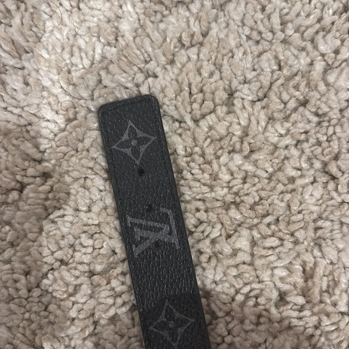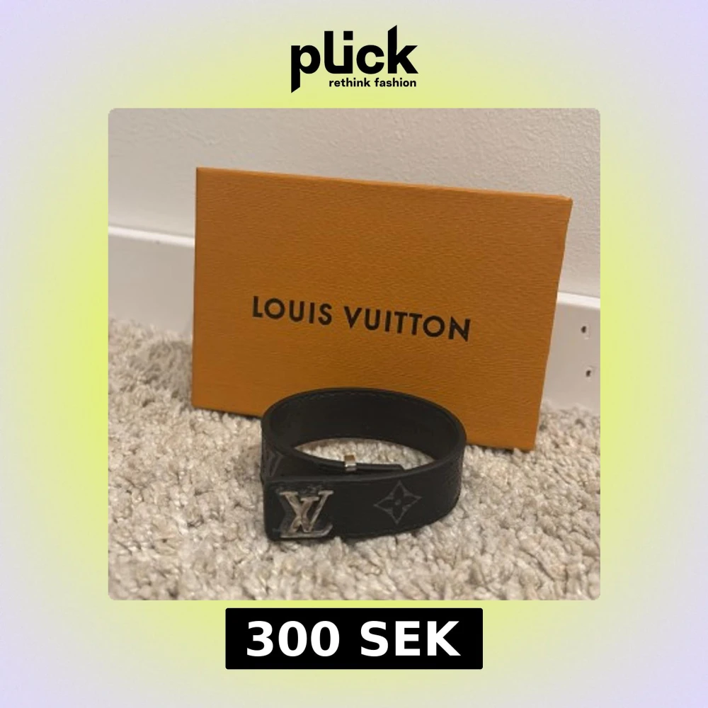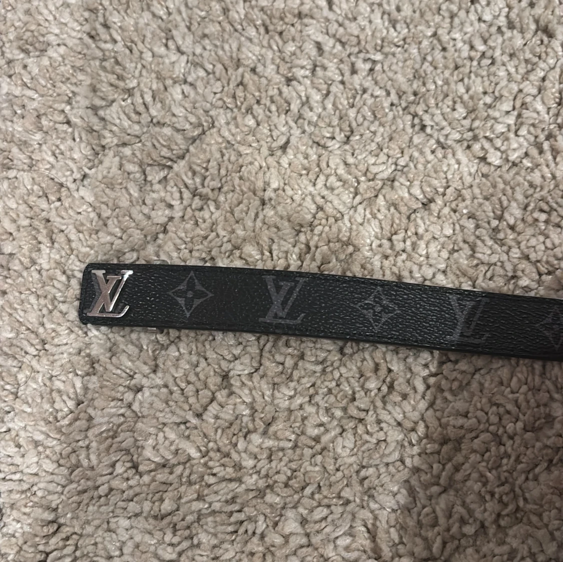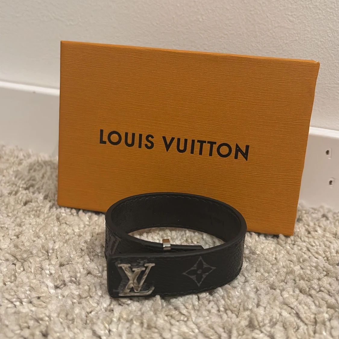 Snyggt svart armband i läder med klassiskt monogrammönster och silverfärgad logga. Perfekt accessoar för att lyfta din outfit med en lyxig touch och ikonisk design.