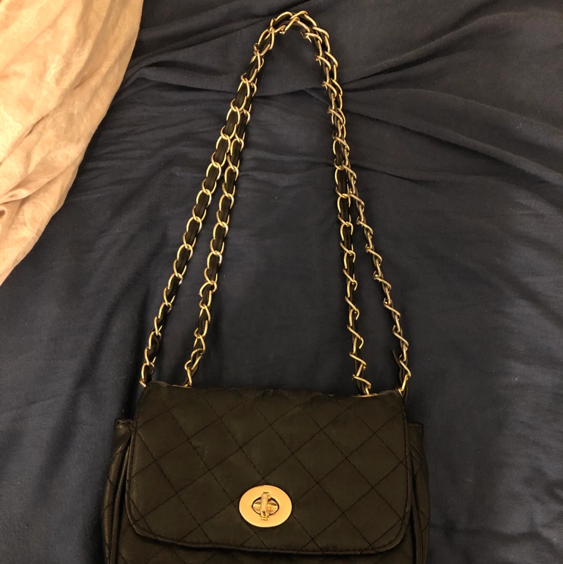 Säljer en svart väska, man kan dra ut banden så de blir längre än på första bilden om man vill:) En dragkedja i väskan har gått sönder som syns på sista bilden. Dm för frågor eller fler bilder🥰
