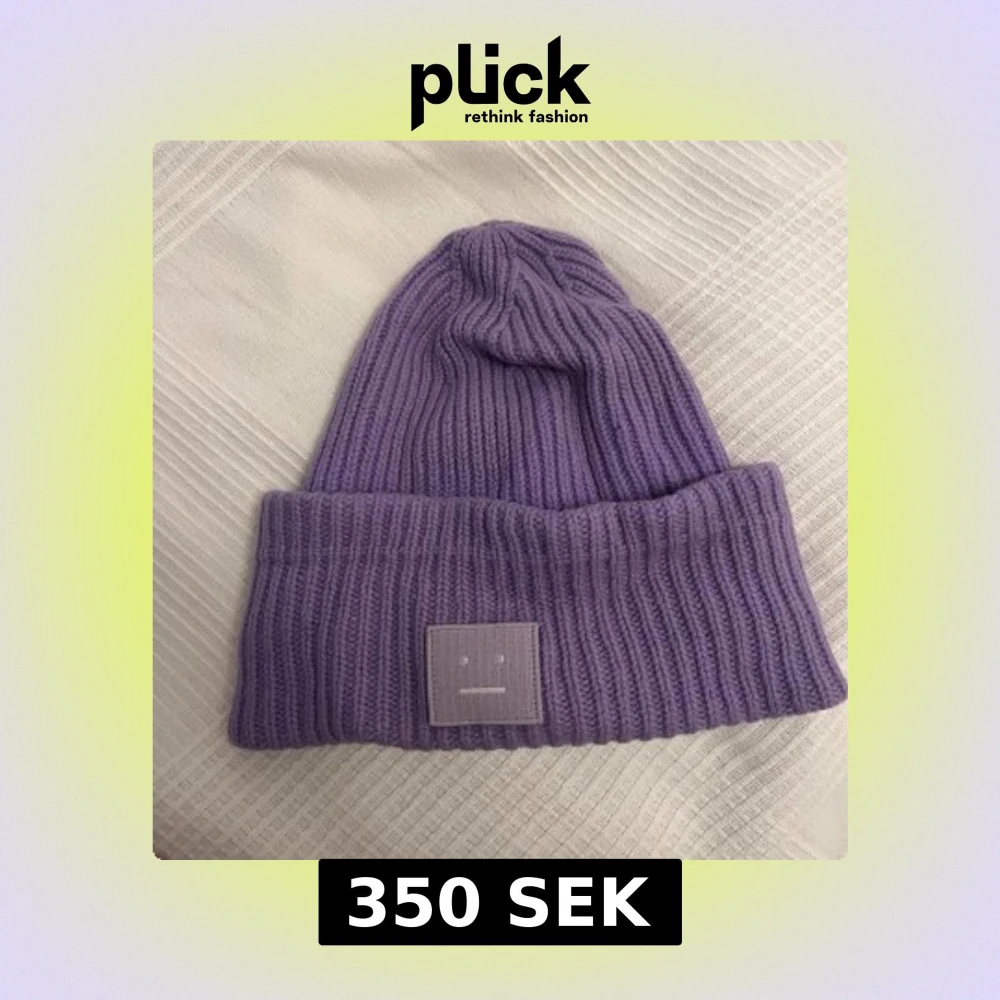 Lila acne mössa. Enda defekterna: två små hål. Ett innanför mössan som ej syns och ett på uppvikningen som knappt syns. Liten sminkrand på mössan (går säkert bort). 56cm. Köpte second hand för ett tag sen så kan ej garantera äkthet 100% men den ser äkta ut.