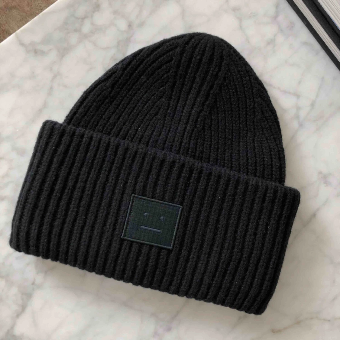 Svart Acne mössa i gott skick! Köparen står för frakten som ligger på 44kr.
