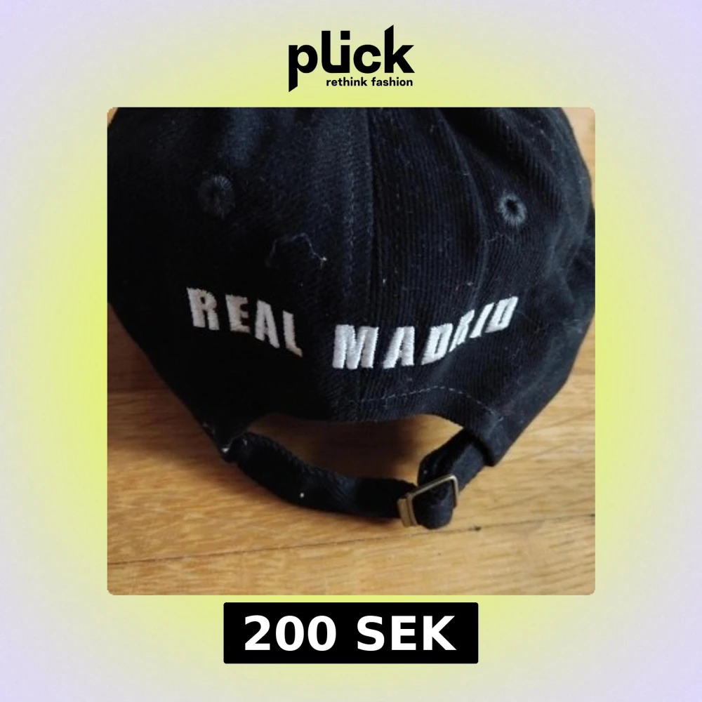 3 st 200 kr st Snygga Real Madrid kepsar i svart och vitt med broderat klubbmärke framtill och texten 'REAL MADRID' baktill. Justerbar rem med metallspänne. Kepsen är tillverkad i bomull och har vita kontrastsömmar. Perfekt för dig som älskar fotboll och vill visa ditt stöd för Real.
