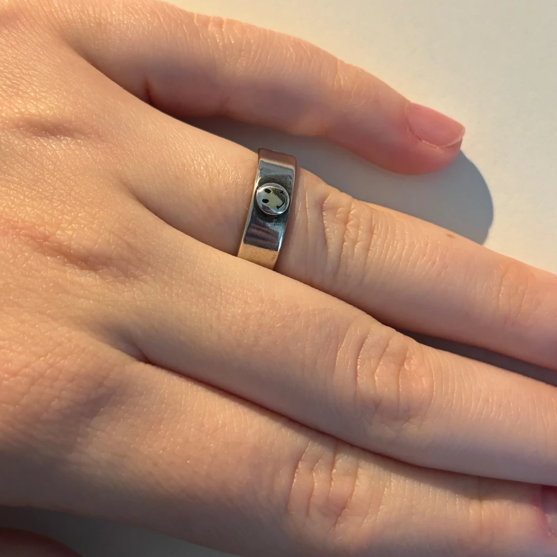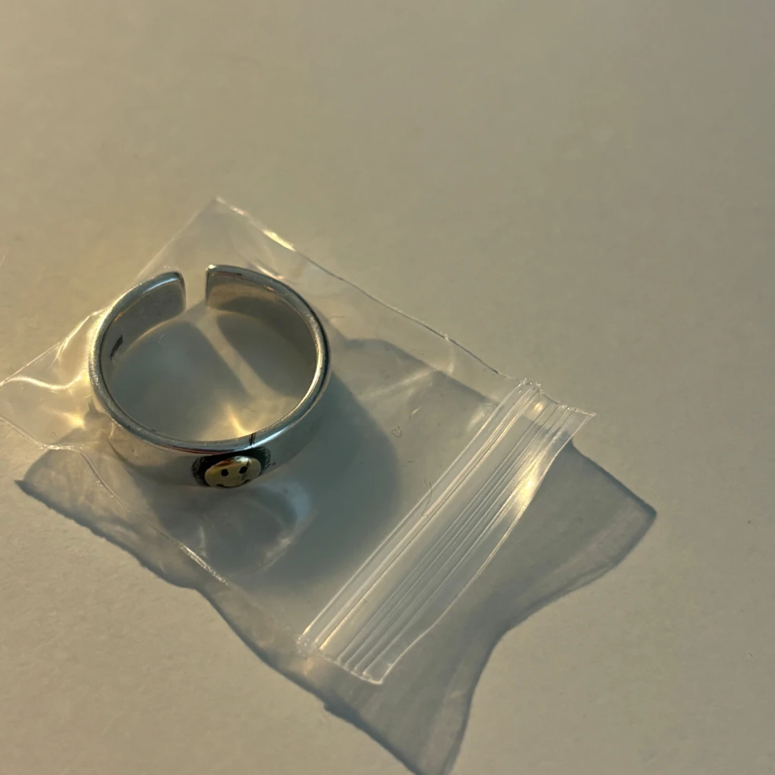 Silverfärgad ring med smiley
