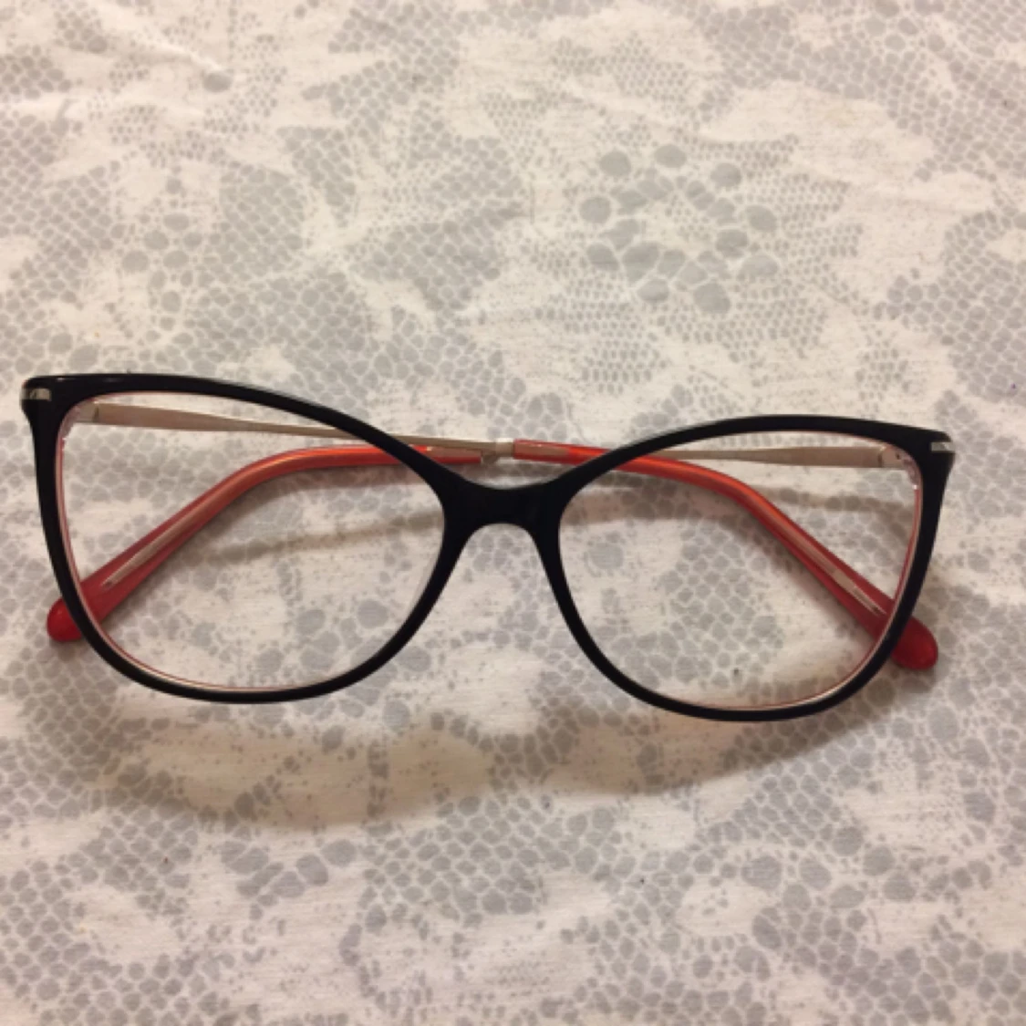 Nya. Stilrena ramar i färgen svart och röd. Köpta utan glas och passar inte riktigt. Säljer de billigt men för bra kvalité.