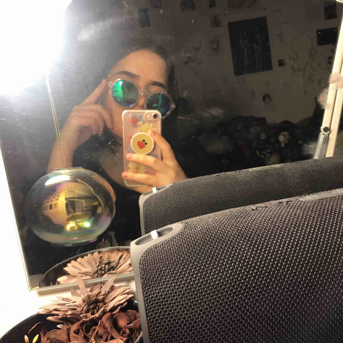 ett par balla genomskinliga solglasögon köpta på MONKI. har en oilspill finish på ”glaset”. väldigt funky :))