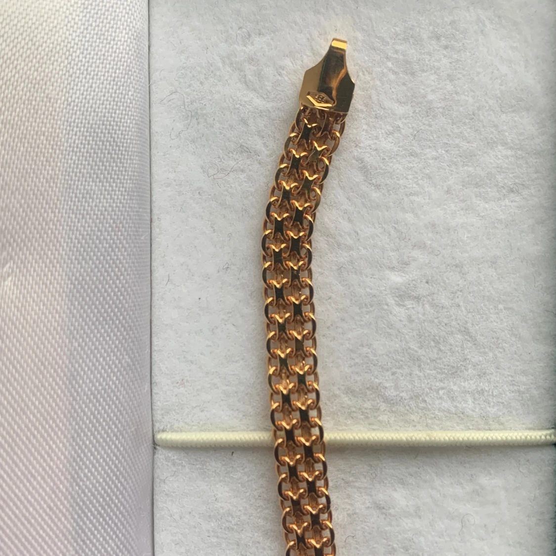 Säljer ett elegant guldarmband med en vacker kedjedesign. 14k gul ca 18cm långt och väger 5g. bismarck typ eller?. Perfekt som present eller för att skämma bort dig själv! ✨