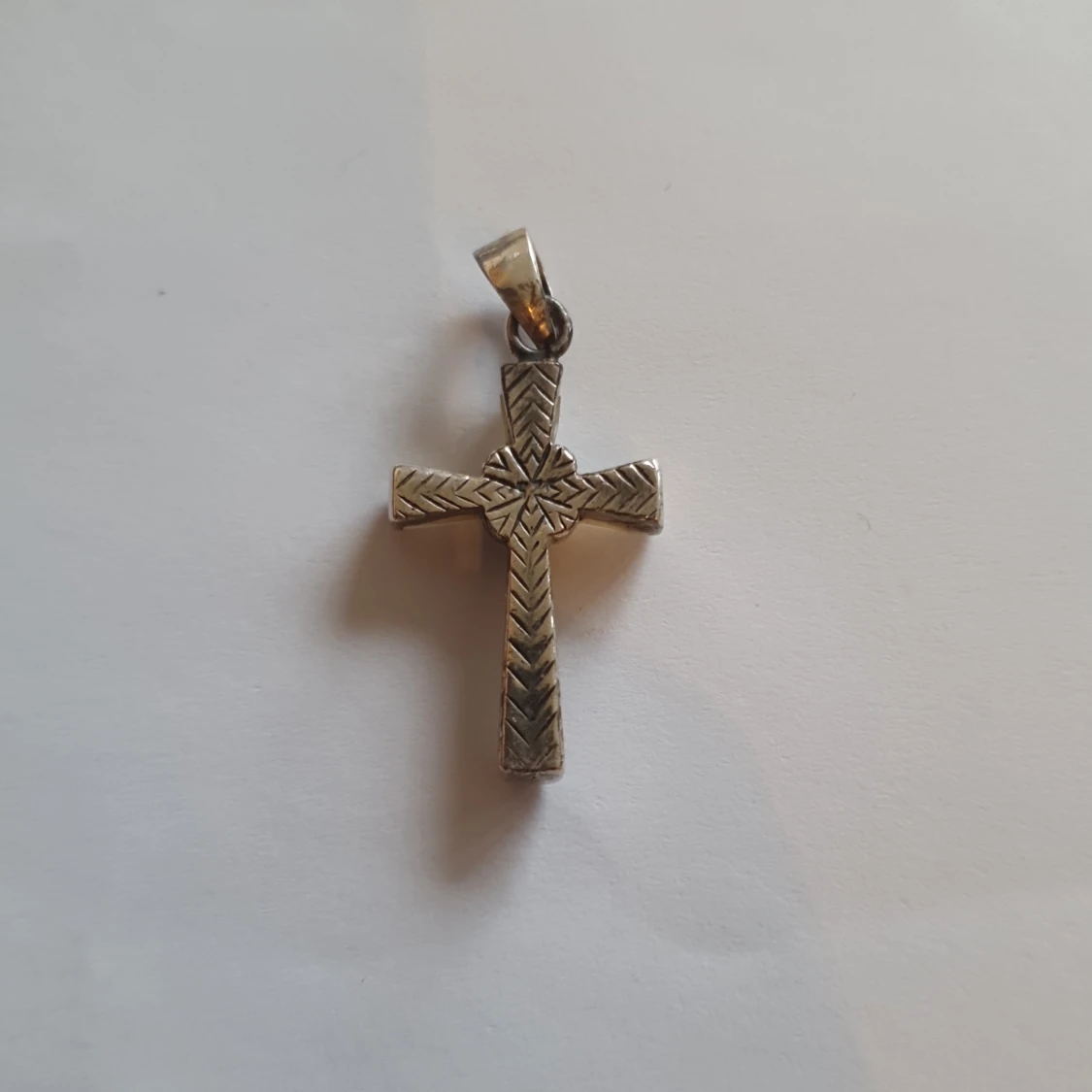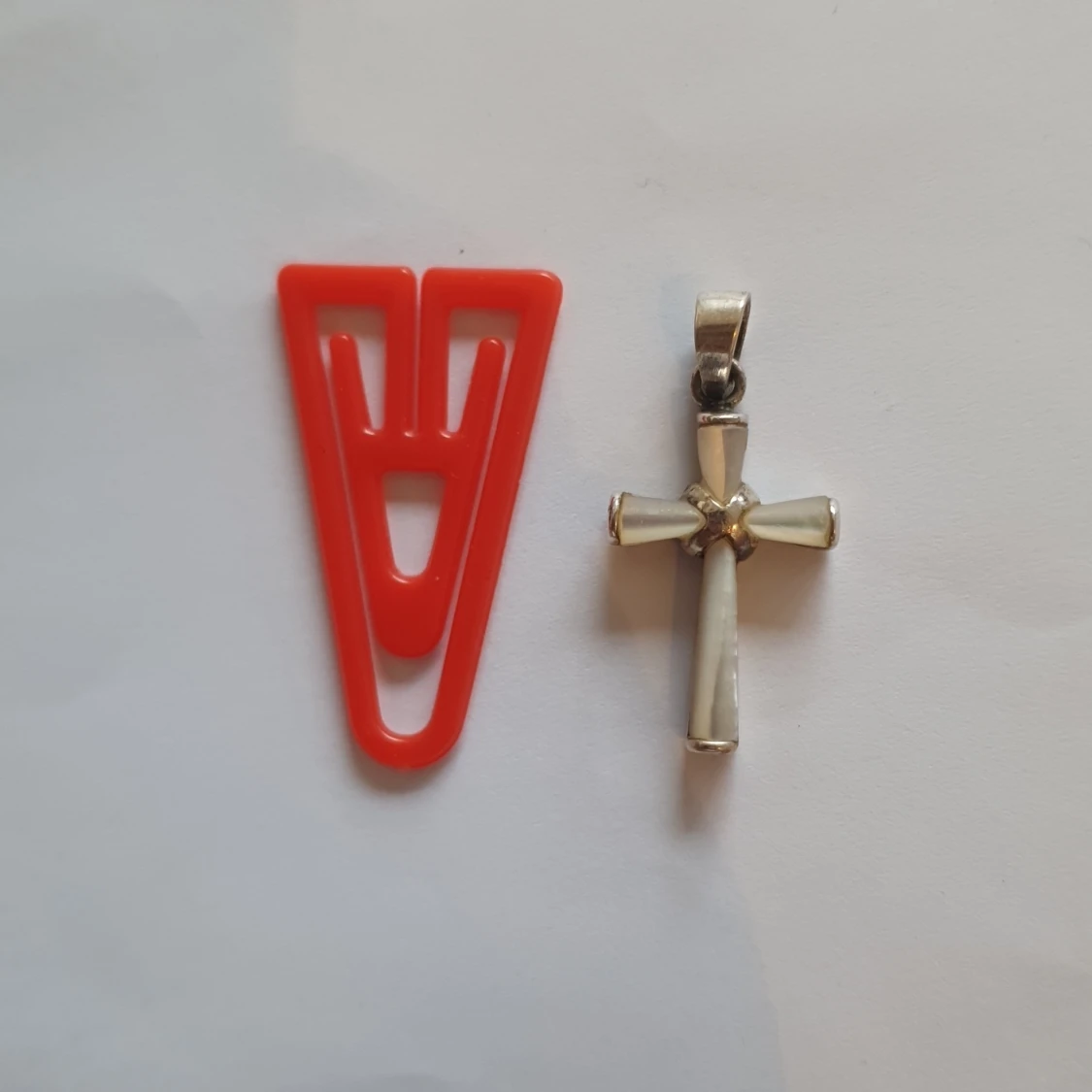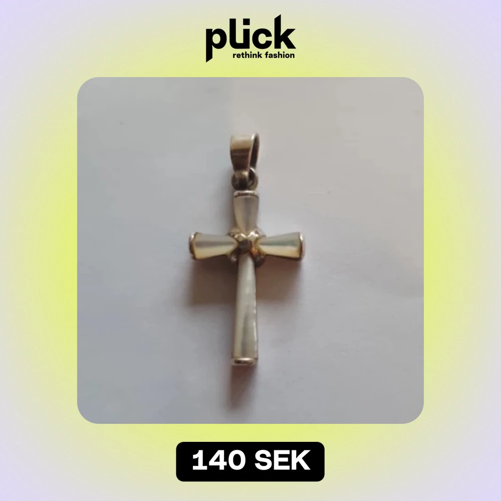 Ett kors i pärlemor & silver Köpt någonstans i södra Europa för några år sedan. Har legat i en ask i en låda. Fint skick 140kr