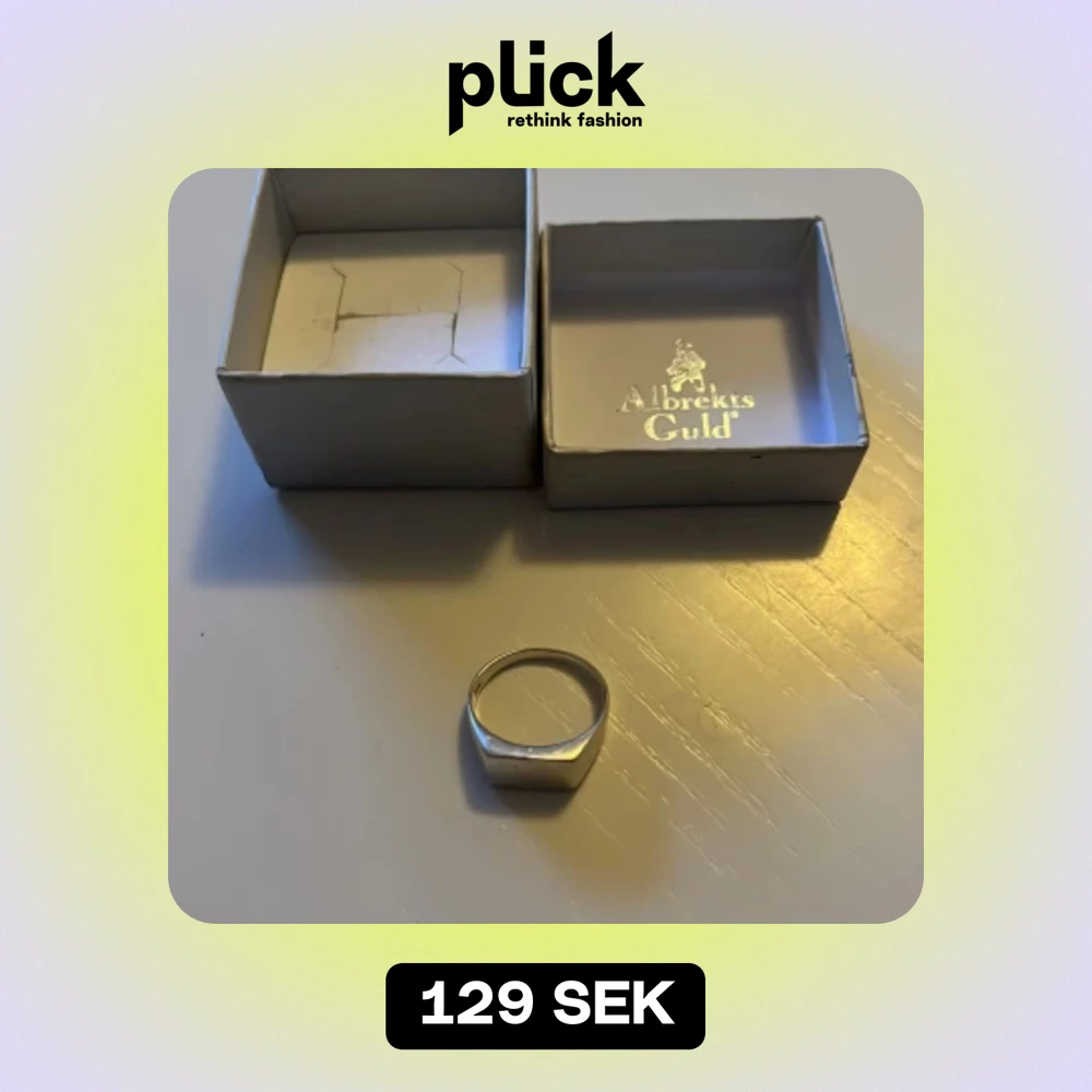 Klackring i äkta silver som inte kommer till användning. Den är lätt repig men går troligtvis bort om man putsar. Den är i storlek 9-10 för män men är snygg på tjejer med. Från albrekts guld ny pris 499kr.