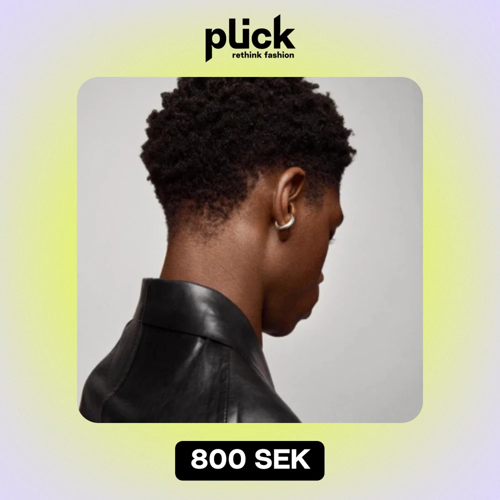 Från deras hemsida: Cylindrical no-piercing ear cuff with the All Blues logo in the cross-section. Handcrafted in Stockholm from recycled sterling silver. Handcrafted in Stockholm Recycled 925 sterling silver Engraved All Blues logo Material and or