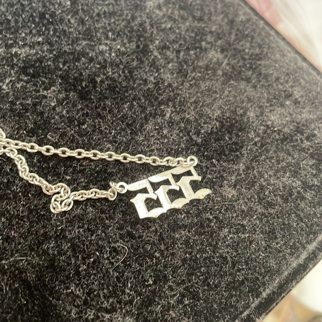 Stilrent halsband i silverfärgad metall med ett coolt hänge i form av siffran 555 i gotisk stil. Kedjan är tunn och smidig, perfekt för att ge din outfit en edgy touch. Passar dig som gillar unika detaljer och vill sticka ut.